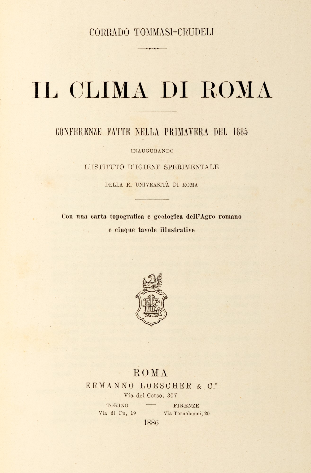 Roma - Tommasi-Crudeli, Corrado - Il clima di Roma : conferenze fatte nella primavera del 1885 inaugurando l'Istituto d'Igiene Sperimentale della R. Universita' di Roma