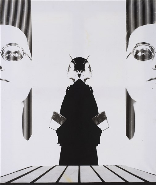 "Natura morta con donna + ragazzo + piano + mezzo retino, 4° versione" 1969