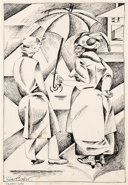 Rudolf Bauer "Sapperlolo" inchiostro su carta cm 41x28,5 Firmato in basso a sin