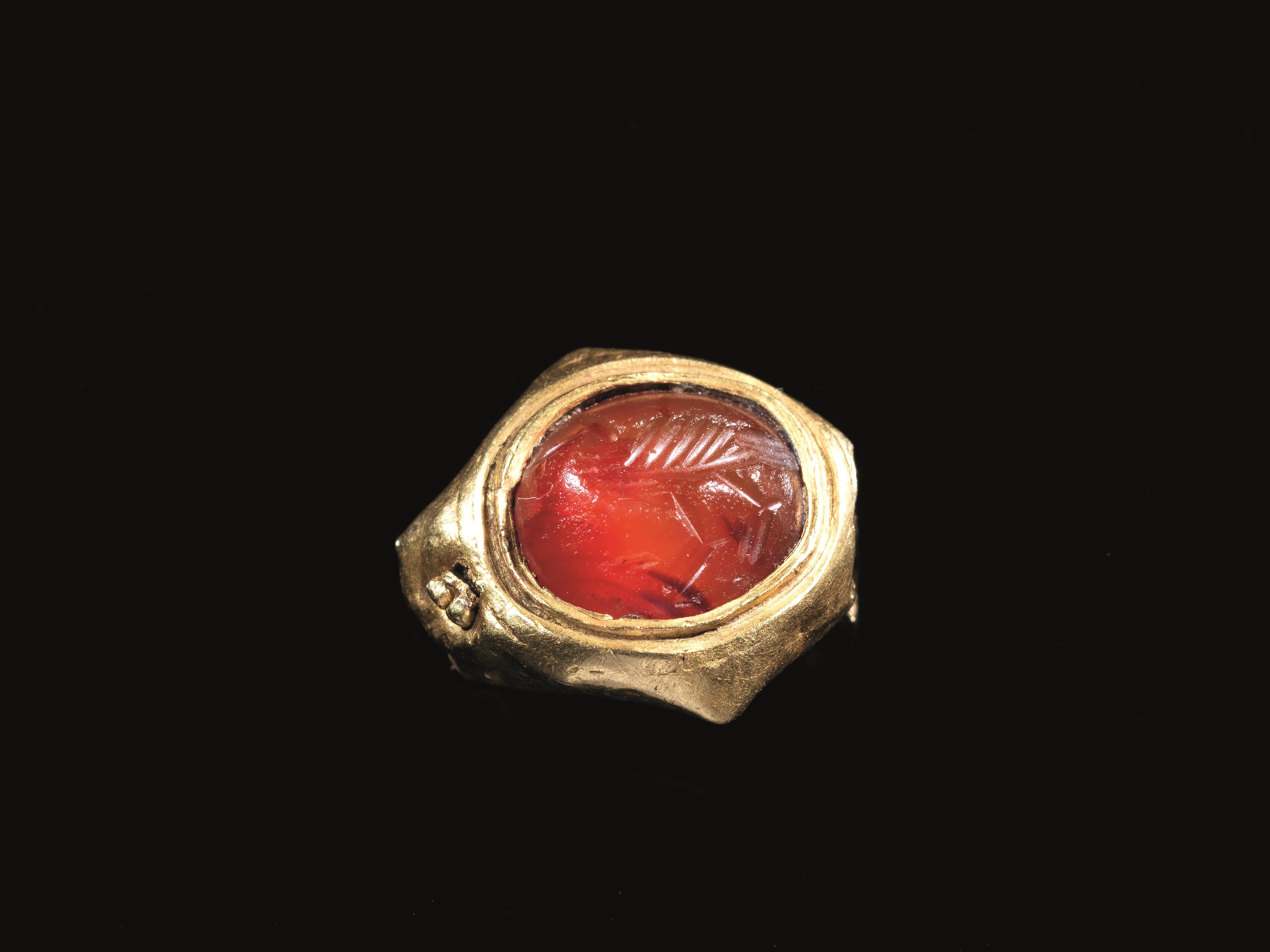 Anello frammentario di cui si conserva la parte superiore con una corniola