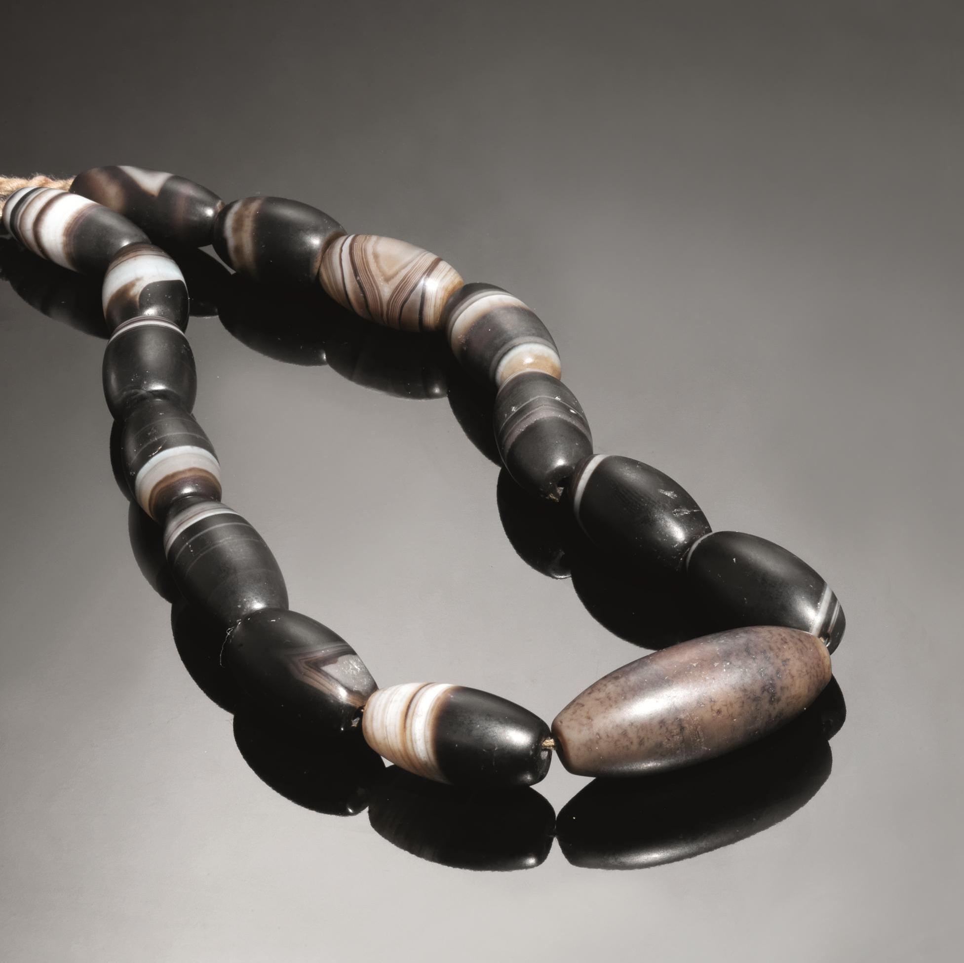 Collana composta da 15 vaghi ellittici in agata