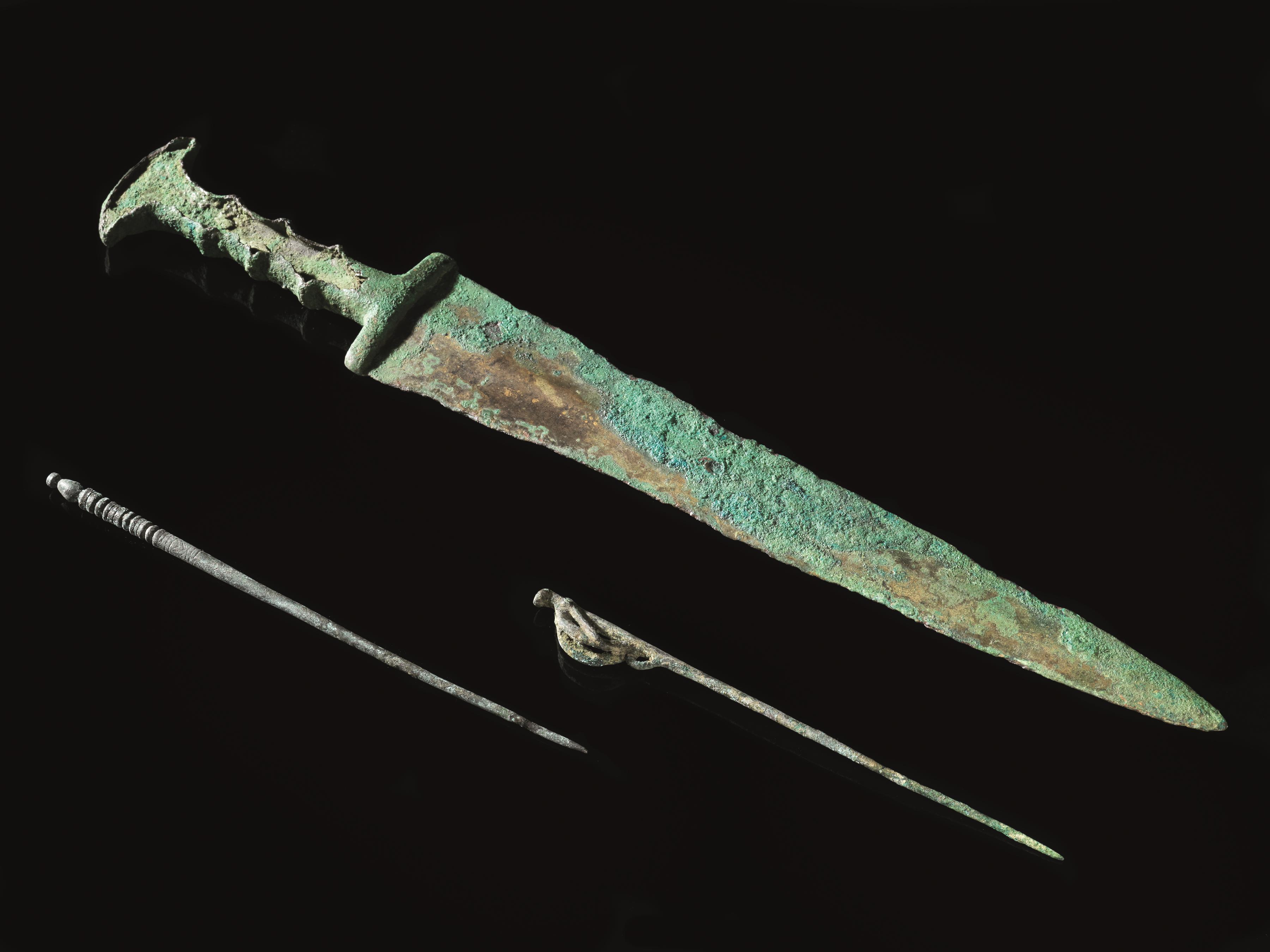 Spada in bronzoMateria e tecnica: bronzo laminato e martellatoLunga lama...