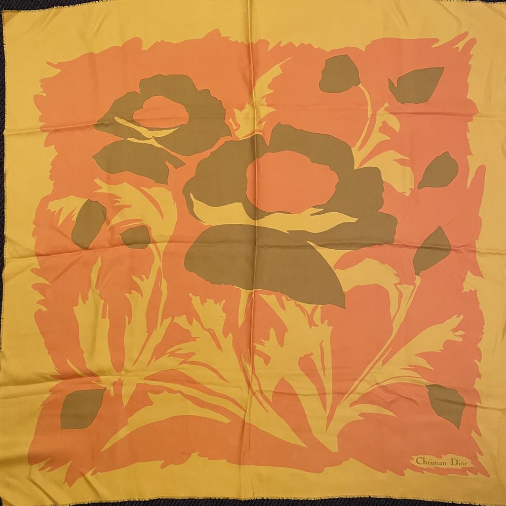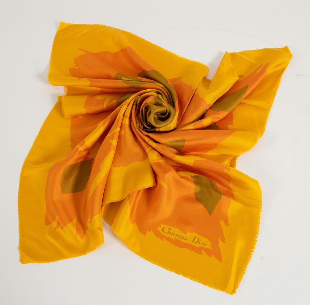 CHRISTIAN DIOR Foulard in seta con disegno floreale. Cm 78x79.