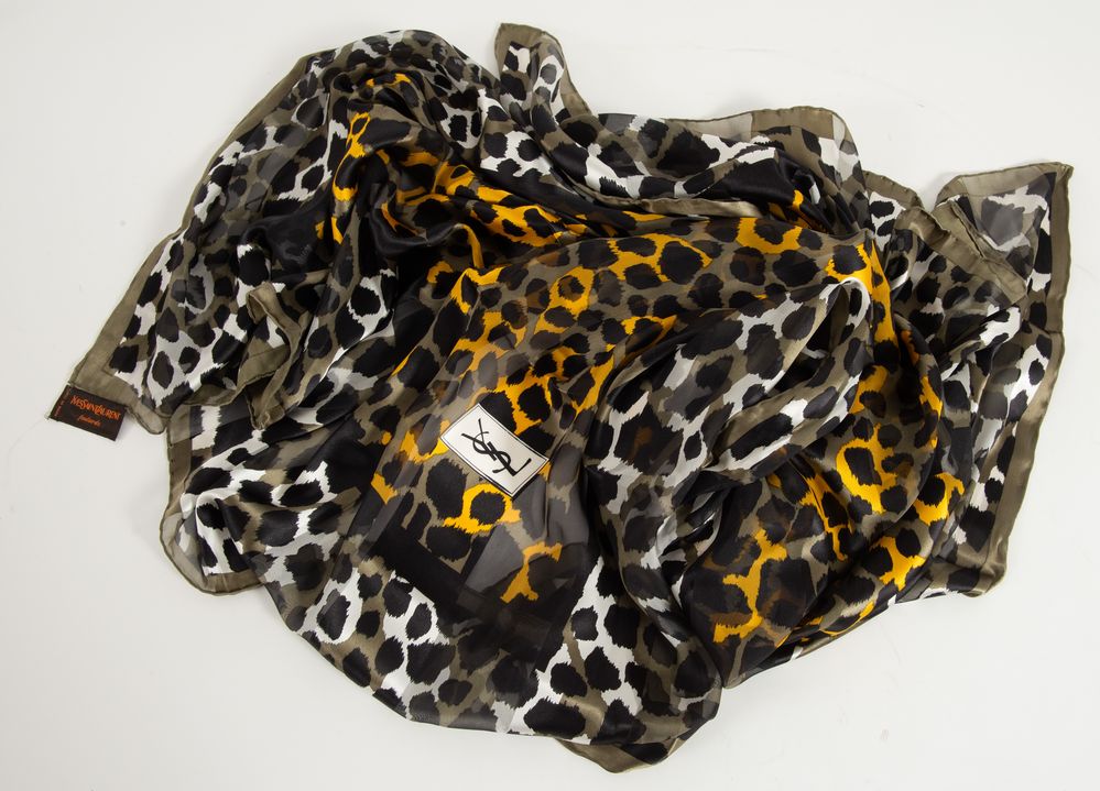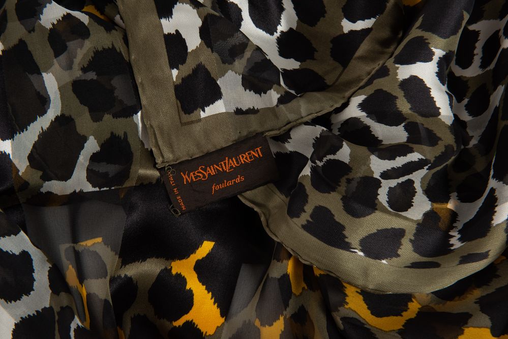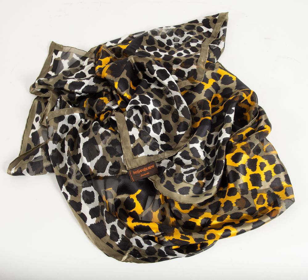 YVES SAINT LAURENT Foulard in seta a motivo animalier. Cm 136x130.