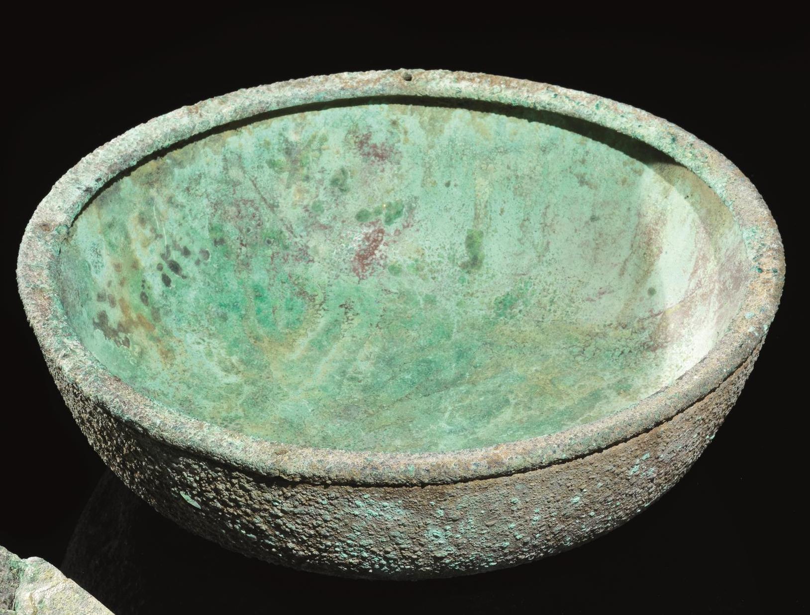 Teglia Materia e tecnica: bronzo laminato, Labbro a tesa ripiegato verso...
