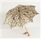 OMBRELLO ANTICO Con manico in legno e metallo dorato decorato da nappina in seta.