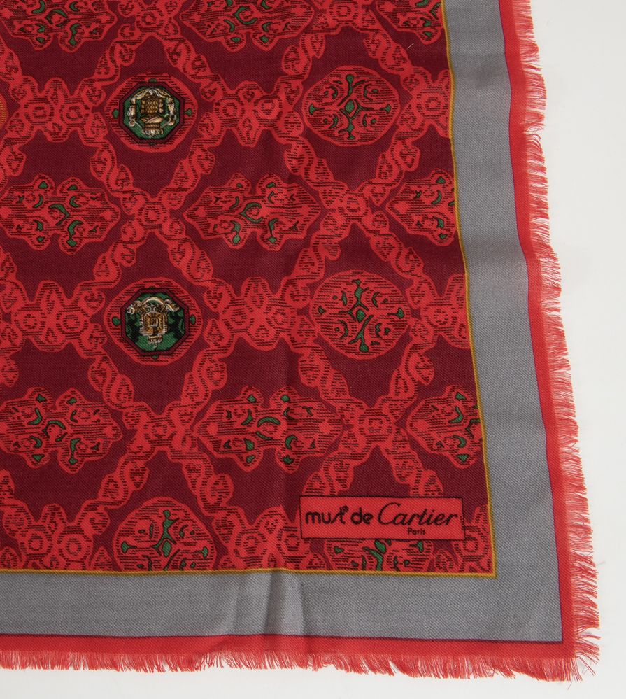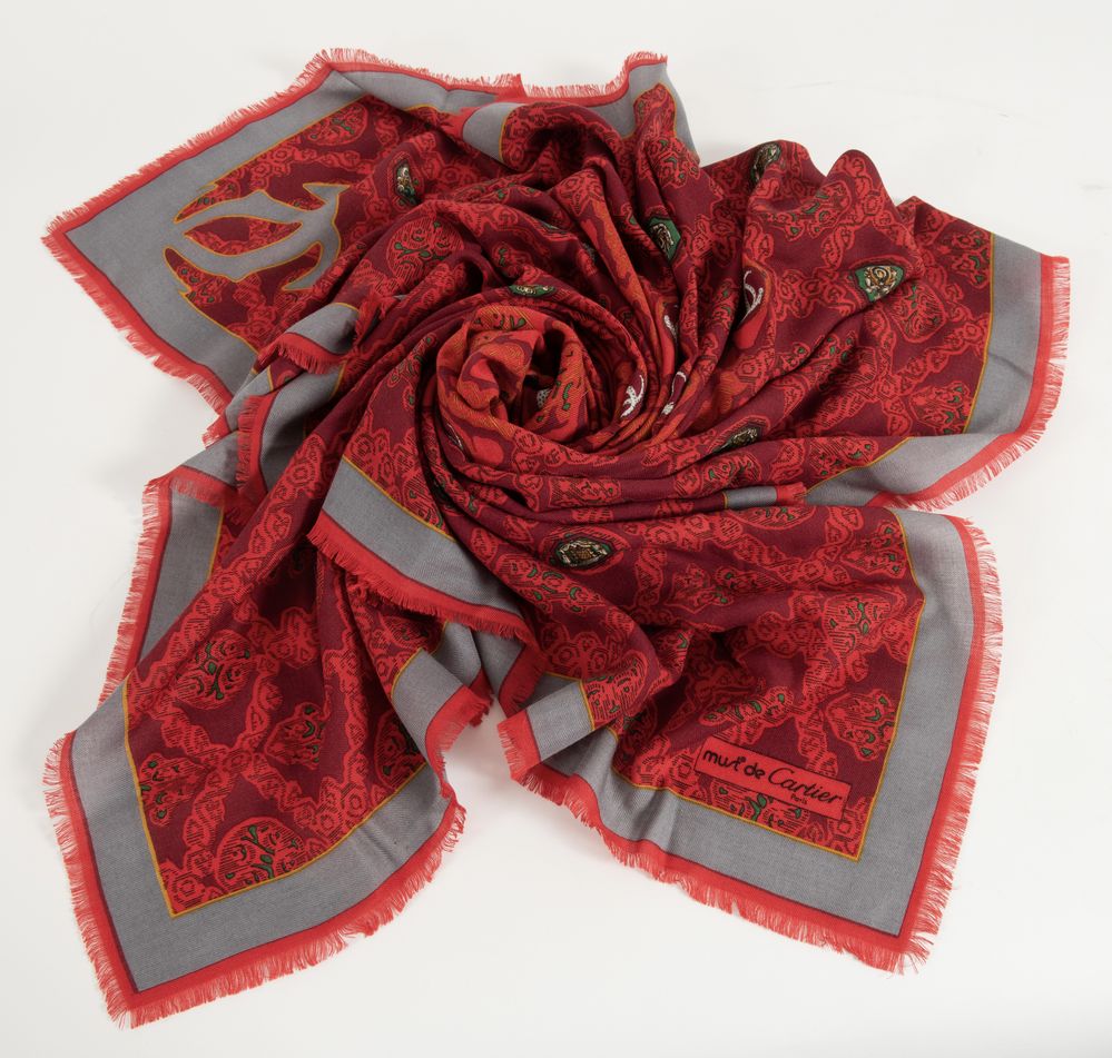 CARTIER Stola in lana e seta sui toni del rosso. Il motivo include lo scudo...