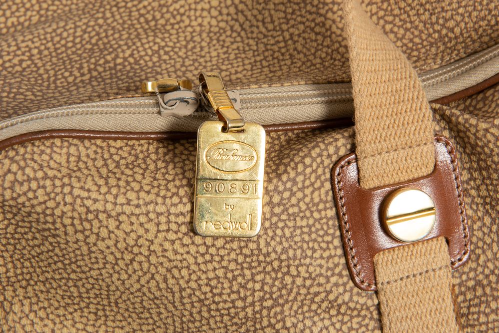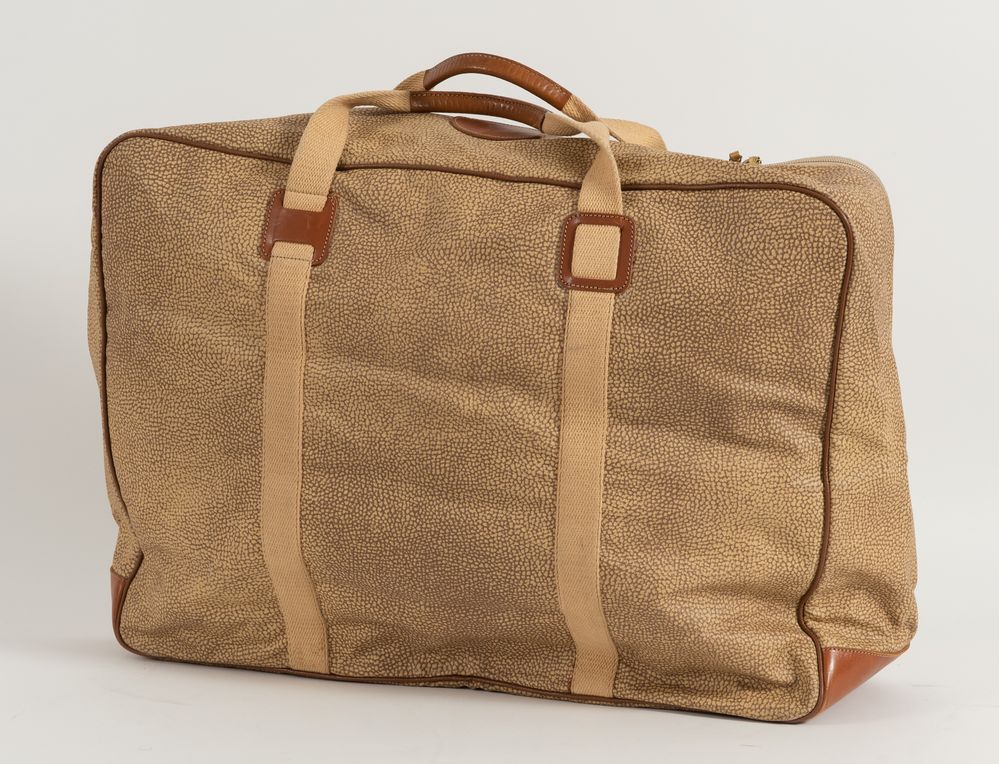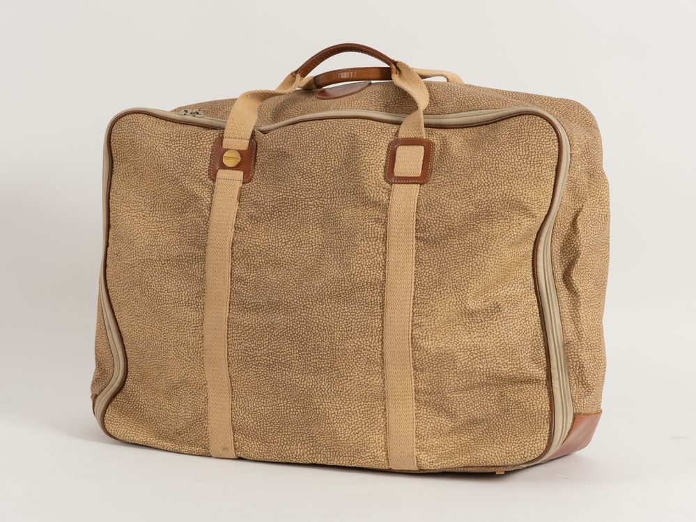 BORBONESE Borsone da viaggio in pelle con inserti in cuoio. Cm 39 x 66 x 20.