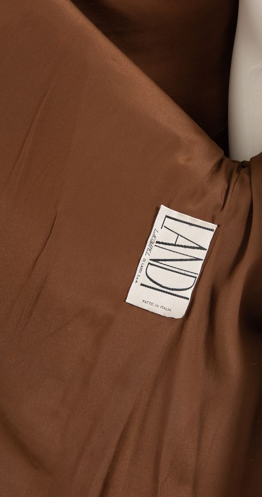 LANDI Cappotto in visone lunghezza 3/4 con cintura, cappuccio e tasche. Cappuccio con chiusura a culisse in pelle scamosciata. Interno rivestito in seta. Taglia non riportata: 44 ca. Reca etichetta Landi Lancopel di Lan s.p.a. Fatto in Italia.