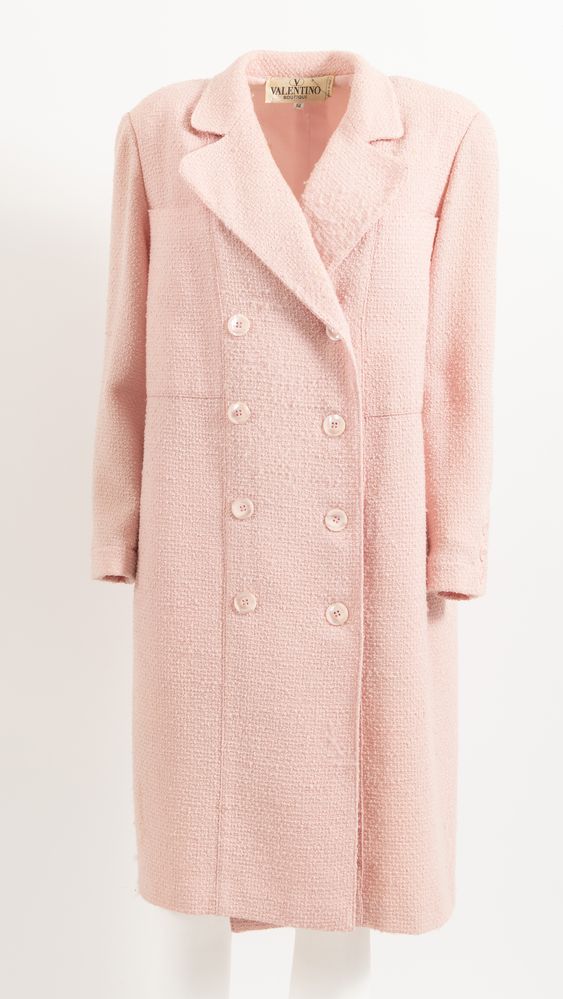 VALENTINO Boutique Cappotto in lana rosa. Interno rivestito in seta. Taglia riportata: 14 (IT 44/46). Reca etichetta Valentino Boutique Made in Italy. (Lievi difetti)
