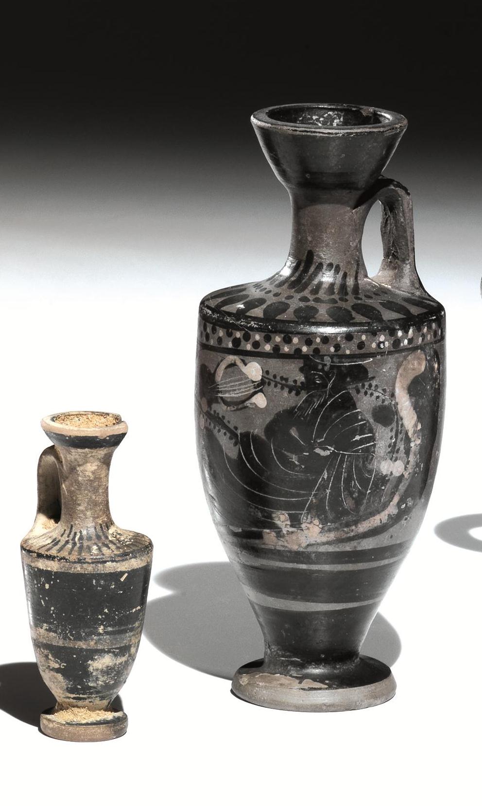 Due lekythoi atticheMateria e tecnica: argilla figulina grigia, vernice nera...