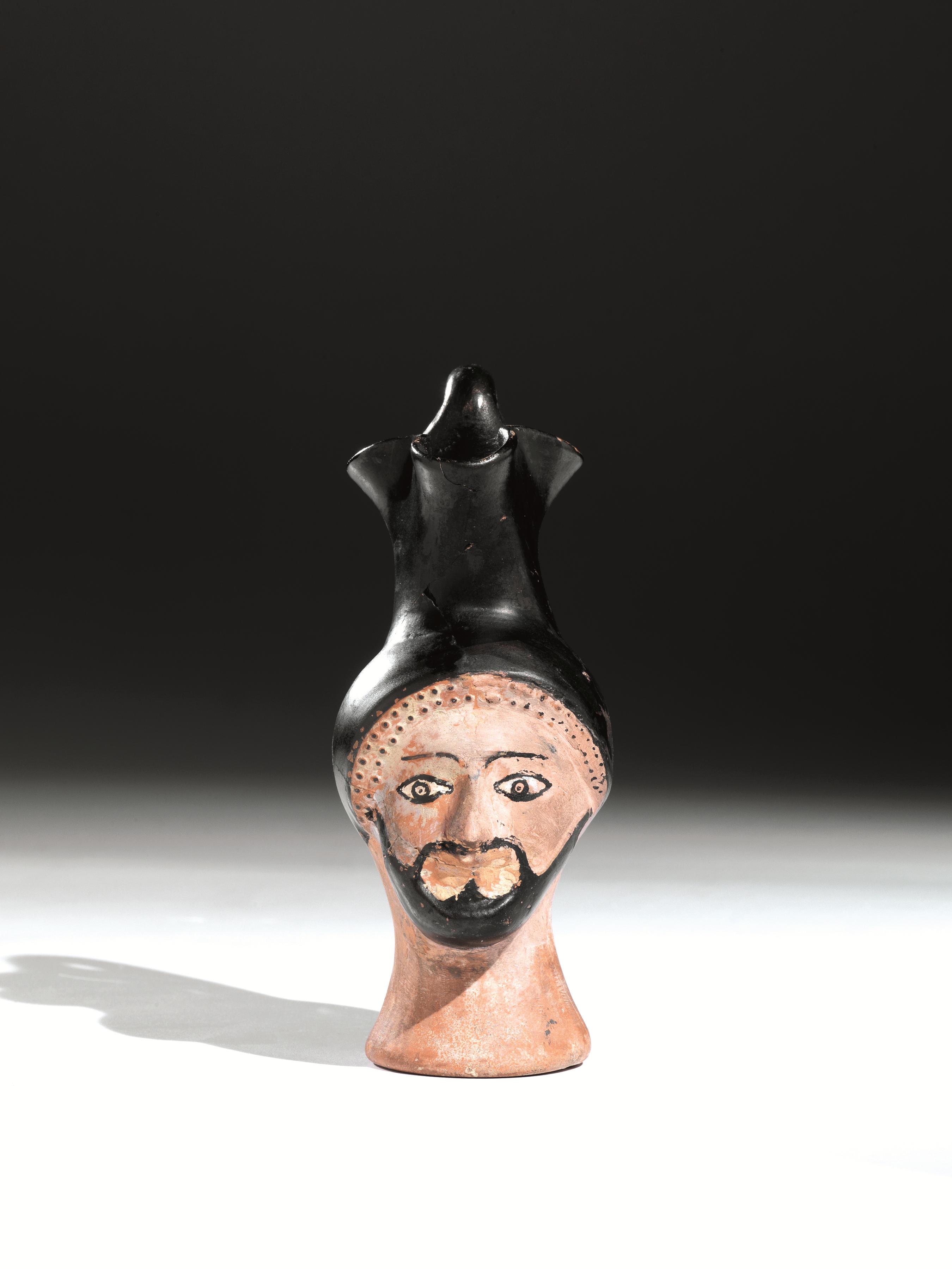 Rara oinochoe attica a testa maschileMateria e tecnica: argilla figulina...
