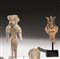 Statuetta maschile nuda con alta acconciatura e testa stilizzata con becco d’uccello, braccia distese lungo i fianchi, indicazione del sesso, statuetta femminile di Dea Madre, con corona in posizione stante (2)