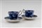 in porcellana bianca e blu, decori a motivi floreali, marca sotto la base