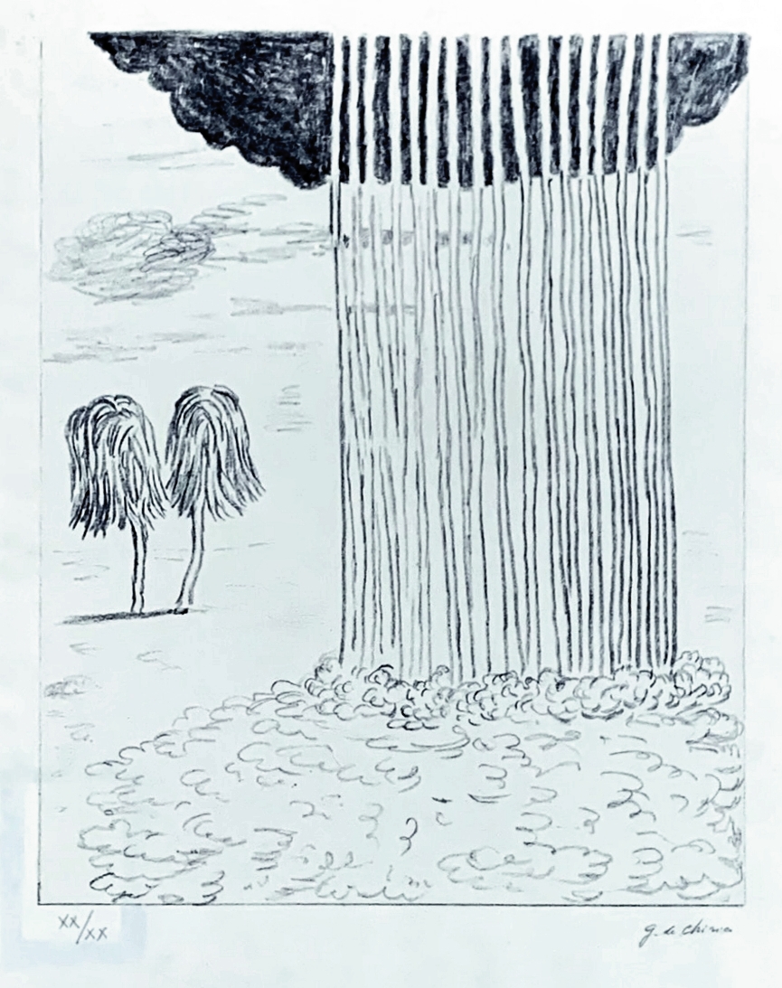 GIORGIO DE CHIRICO, La pioggia nel deserto, 1973
