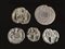 Cinque patere circolari in scisto decorate a incisione con motivi
