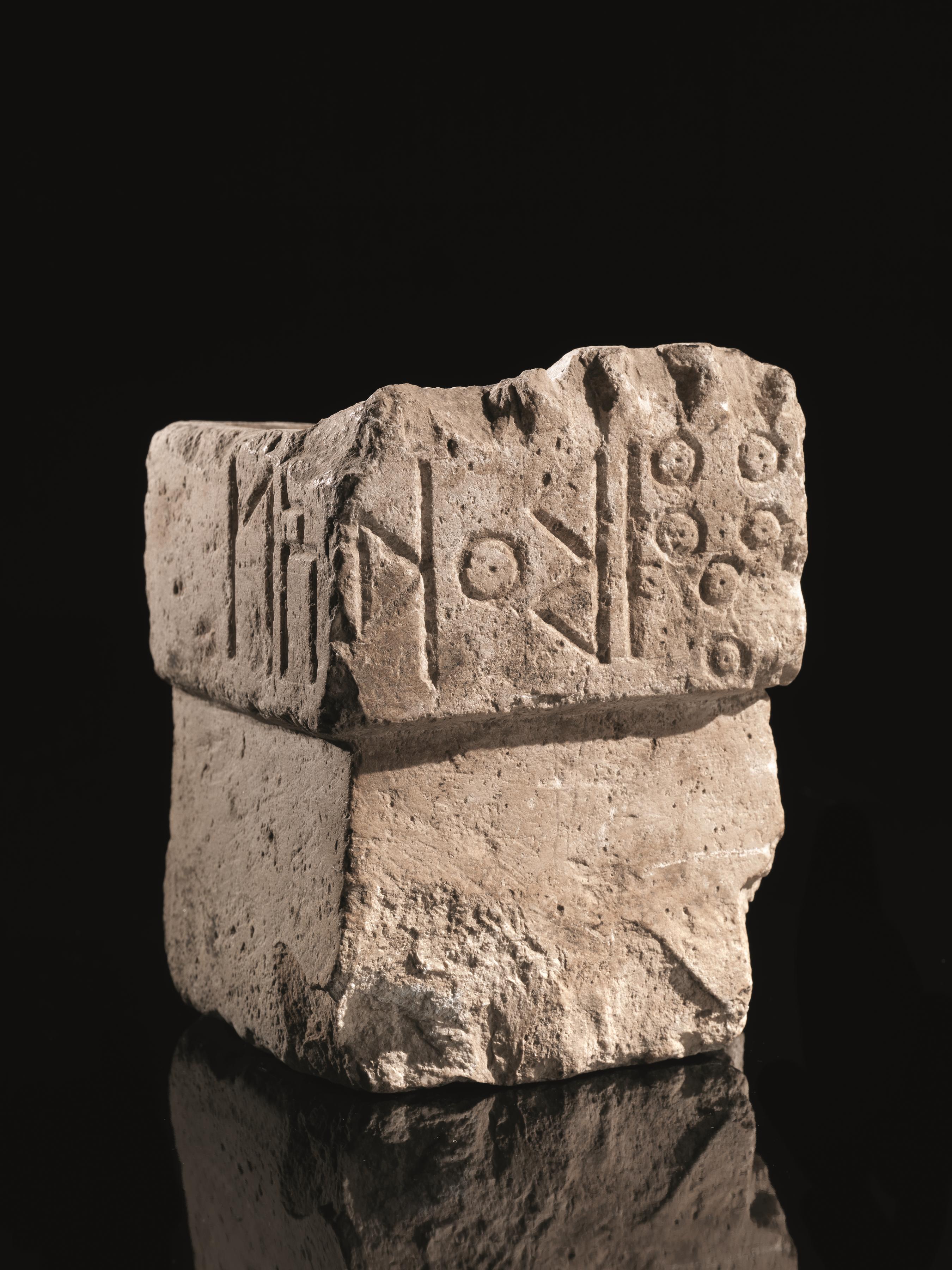Incensiere con iscrizione SabateaMateria e tecnica:calcare scolpitoPilastro a...