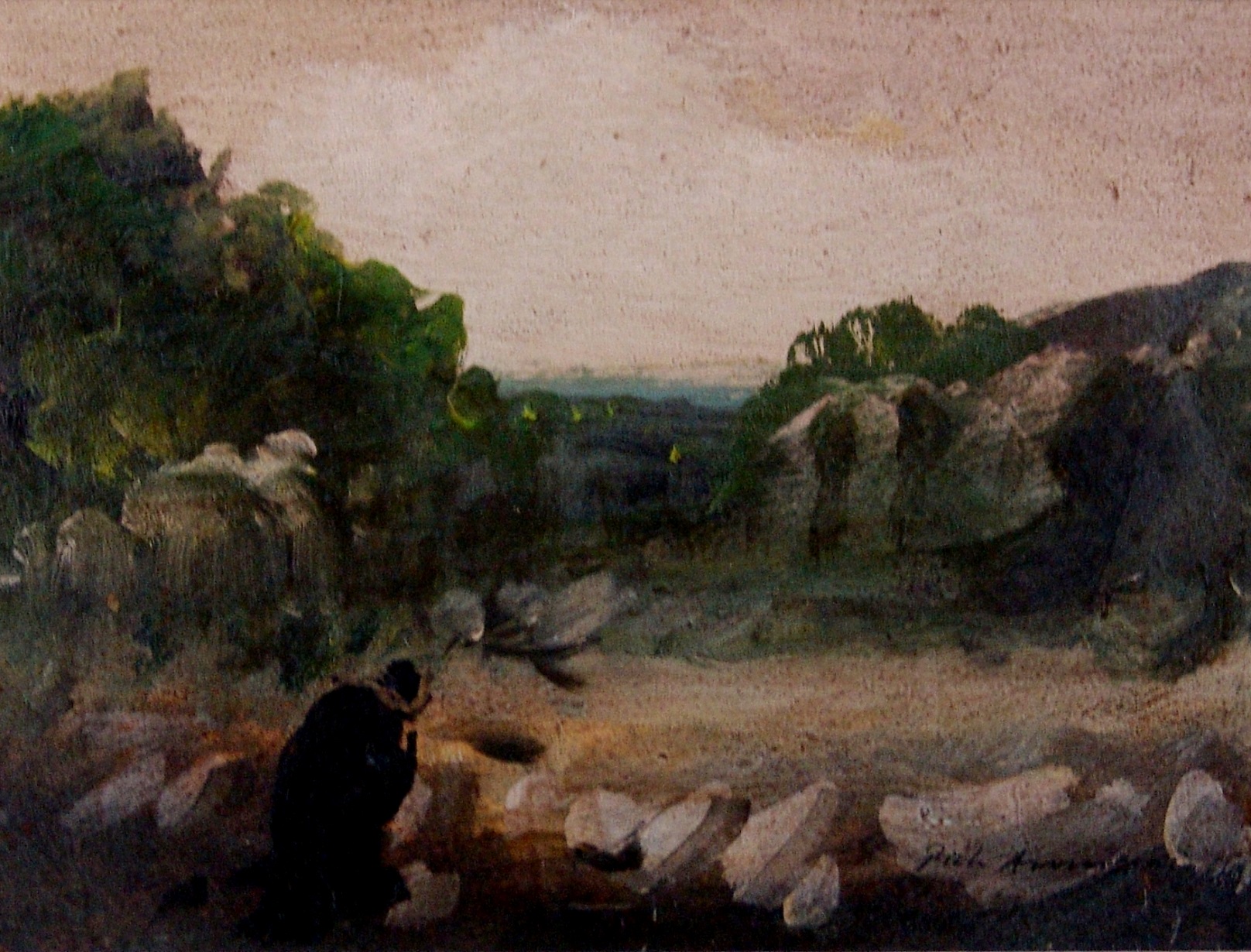 PIETRO ANNIGONI, Paesaggio con eremita, 1968