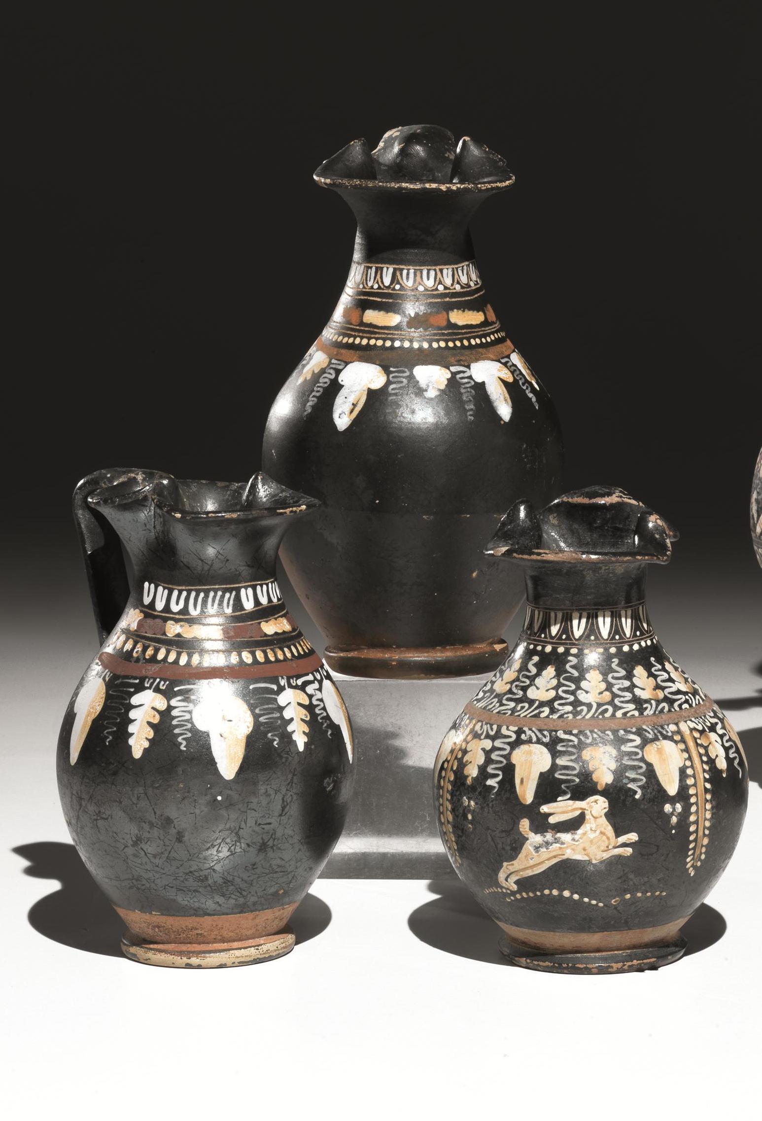 Tre oinochoai a bocca trilobata nello stile di Gnathia