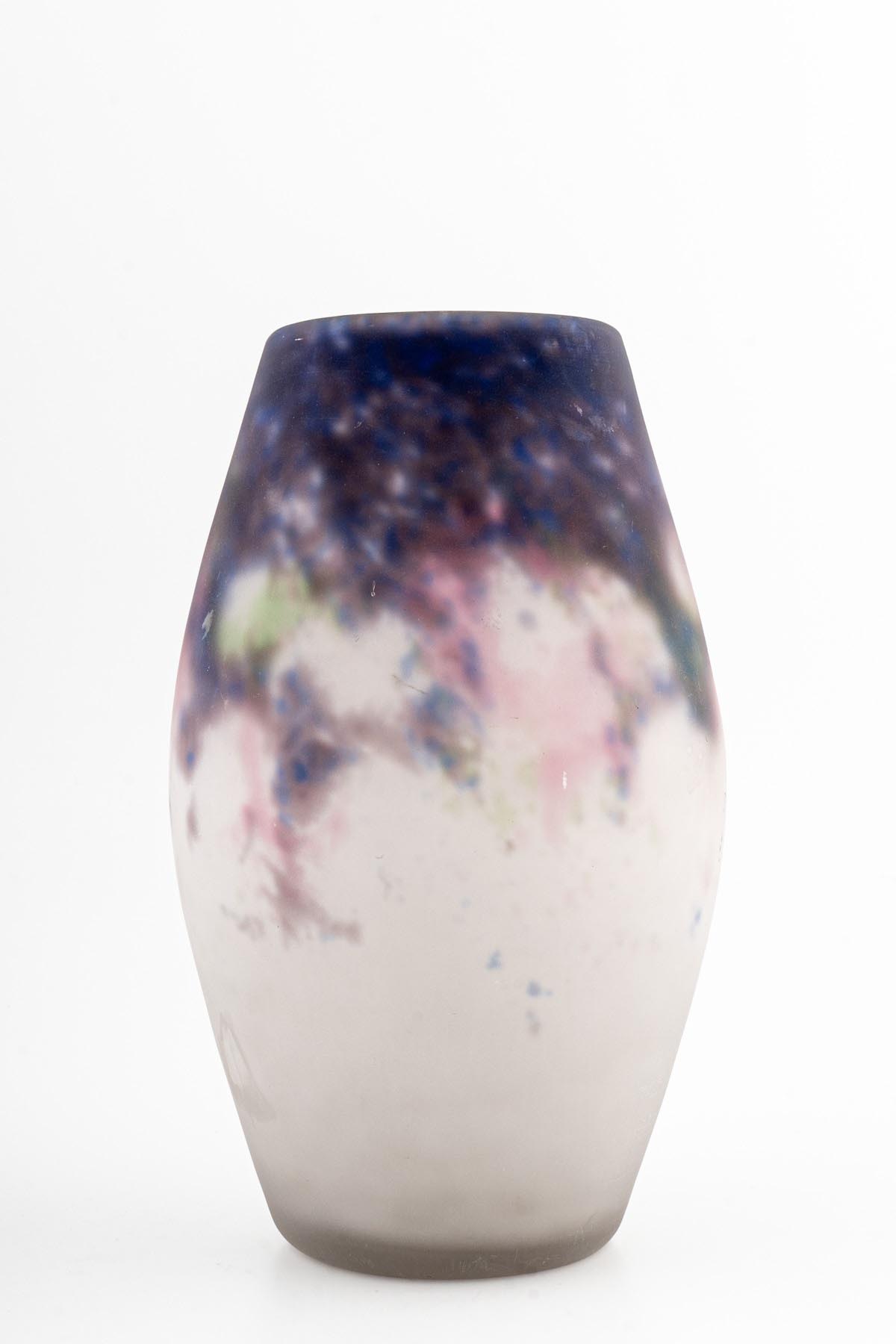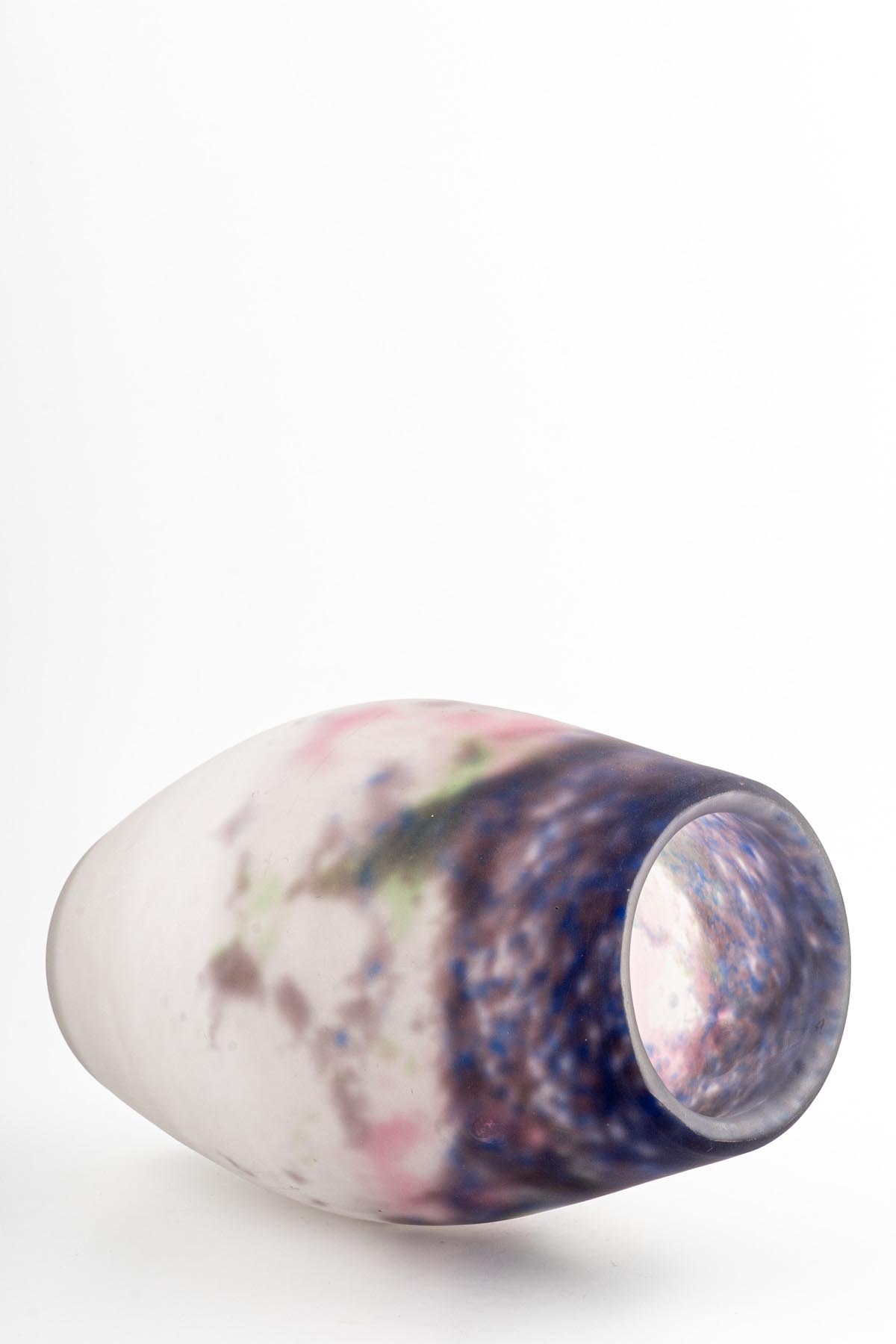 in pasta di vetro, decoro astratto ottenuto con tecnica di marmorizzazione nei toni del blu-rossastro su un fondo bianco maculato
