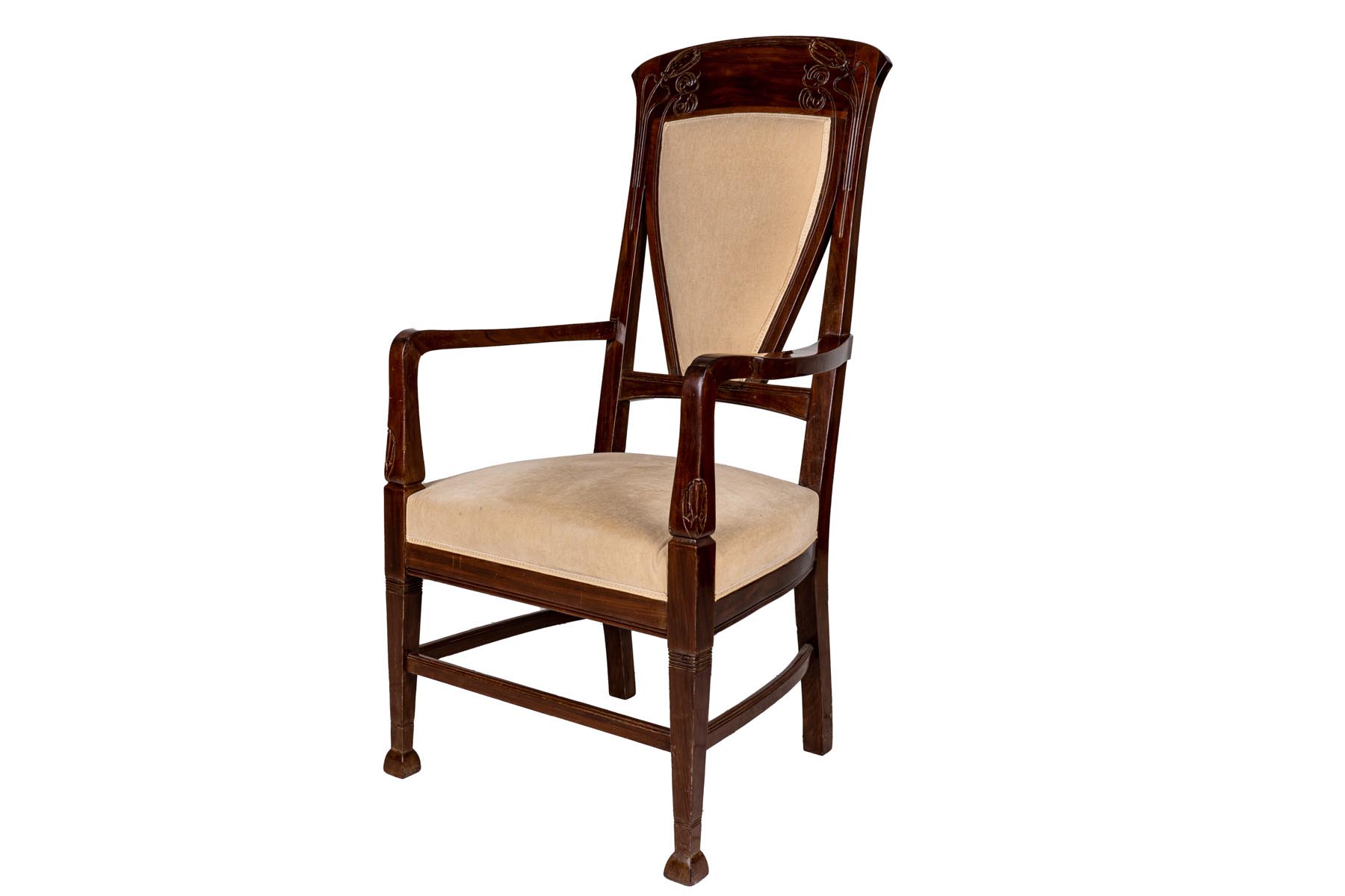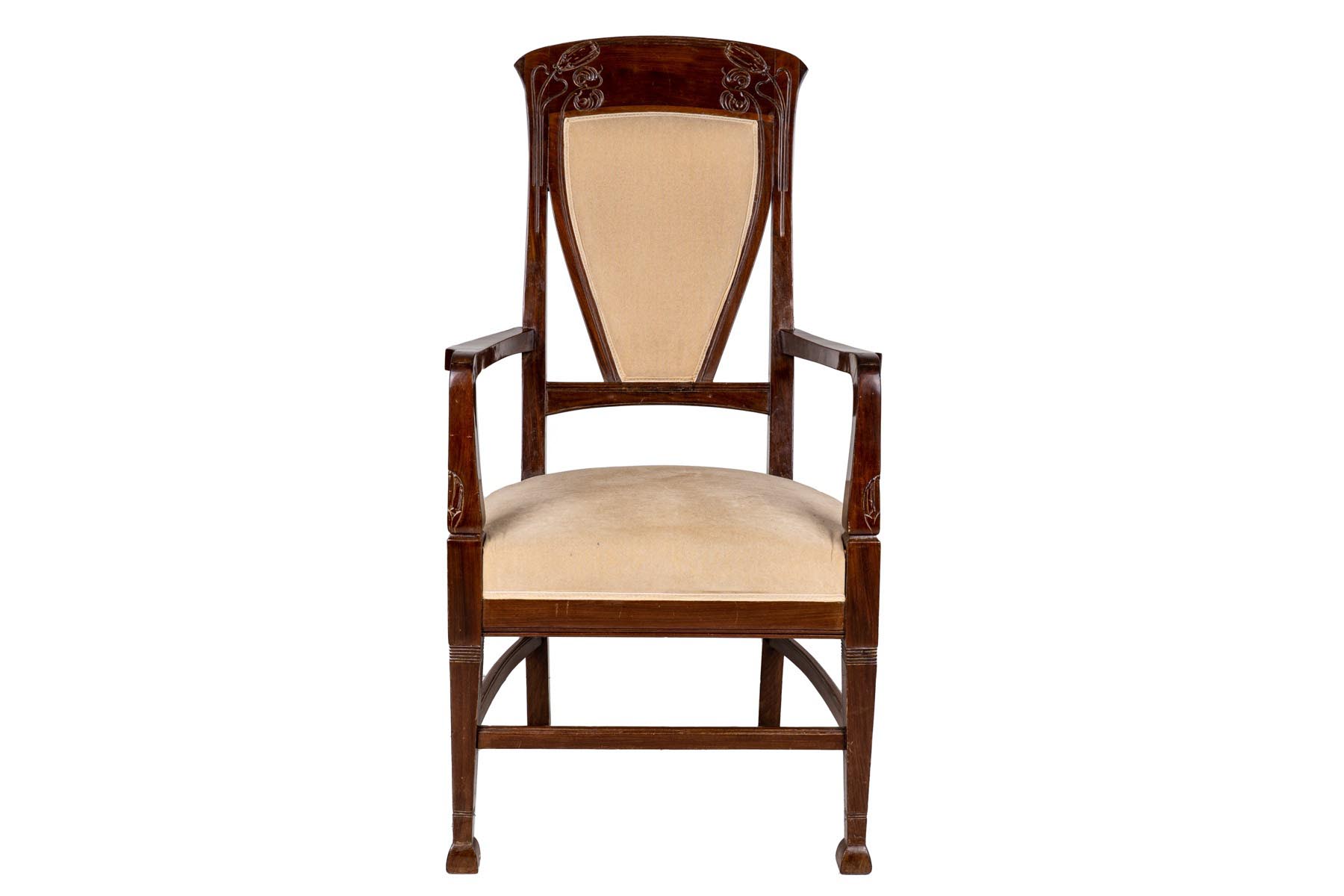 Lotto 91 | Poltrona Liberty in legno di ciliegio con decoro scolpito