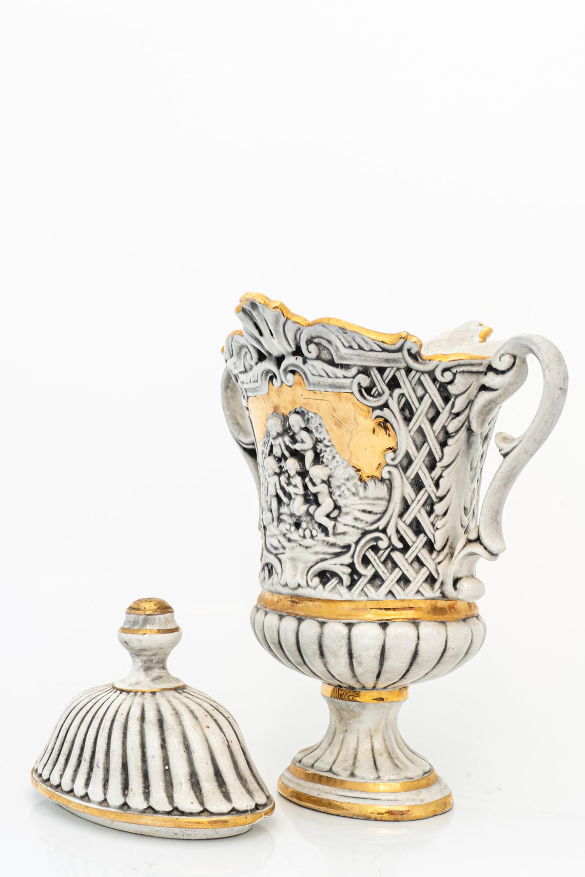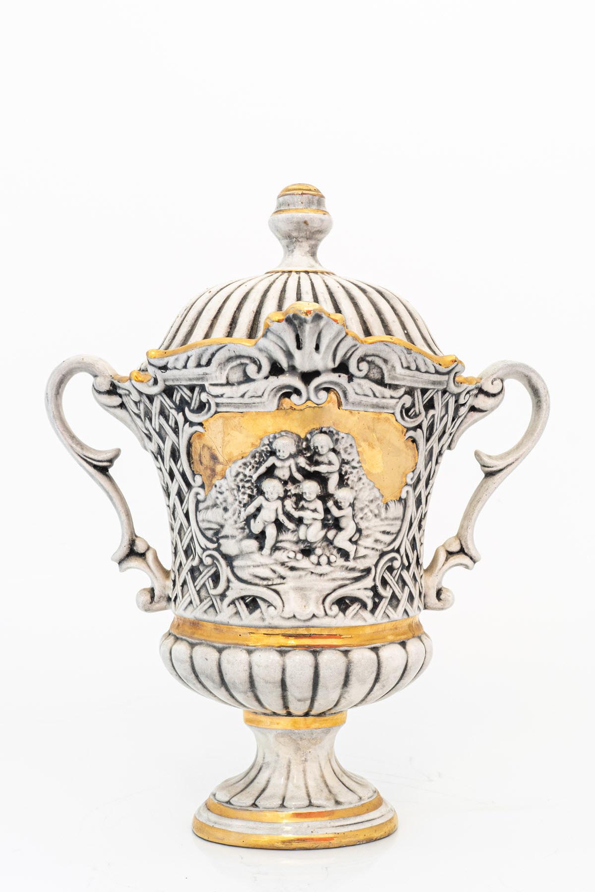 Vaso in ceramica Capodimonte con putti in bassorilievo