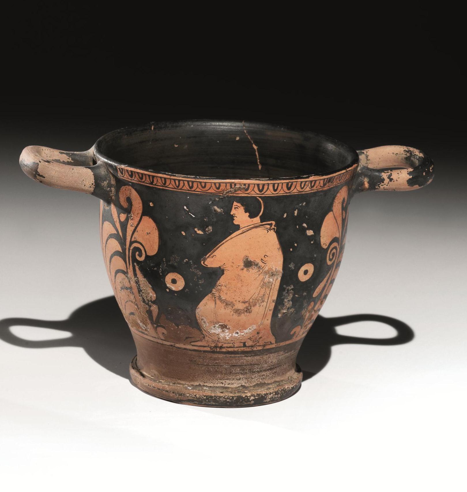 Skyphos apulo a figure rosseMateria e tecnica: argilla figulina rosata,...
