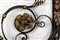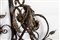 decorata a mano con volute e motivi floreali, ripiano in vetro