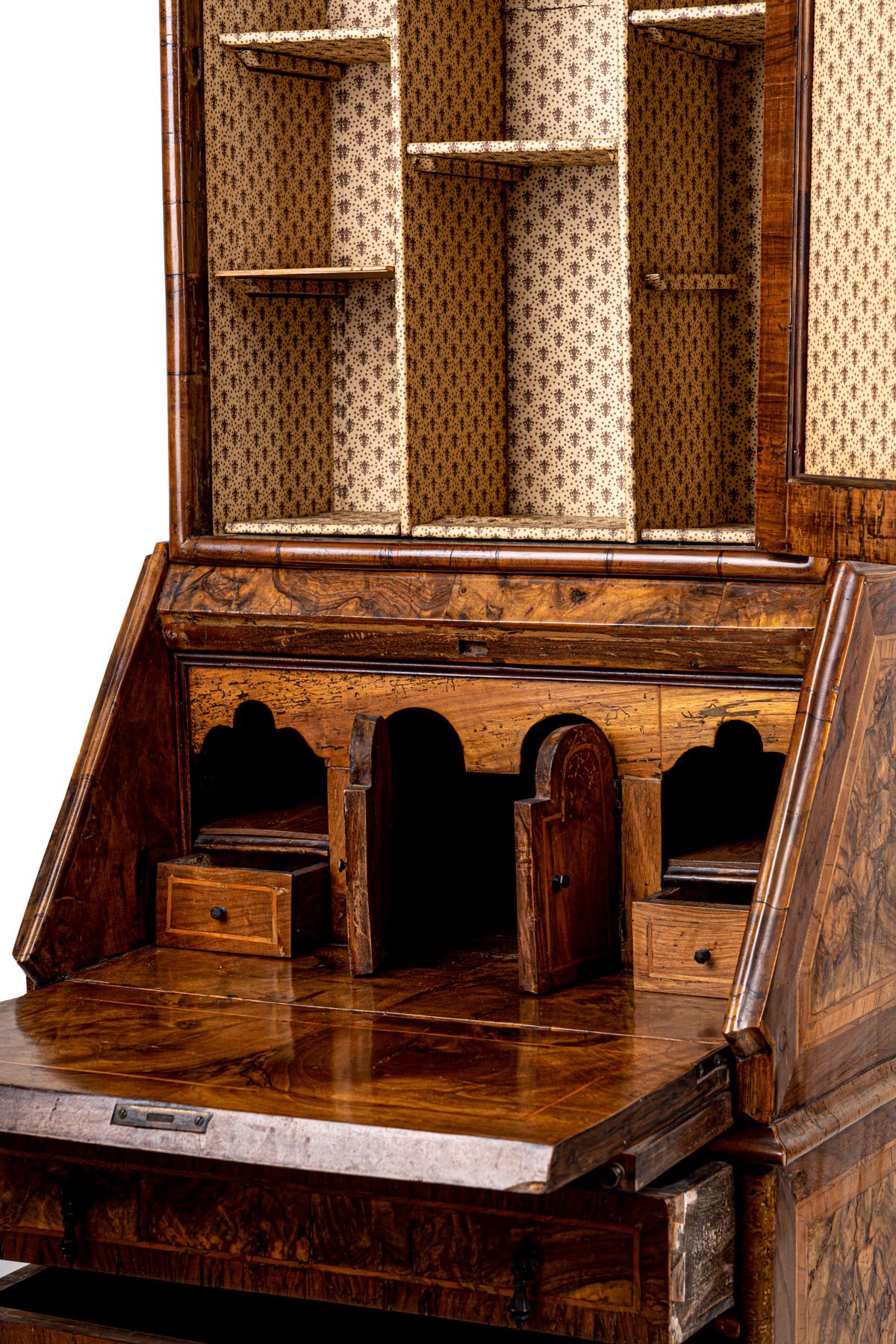 Bureau-trumeau, in stile veneto del Settecento, in noce e radica di olivo