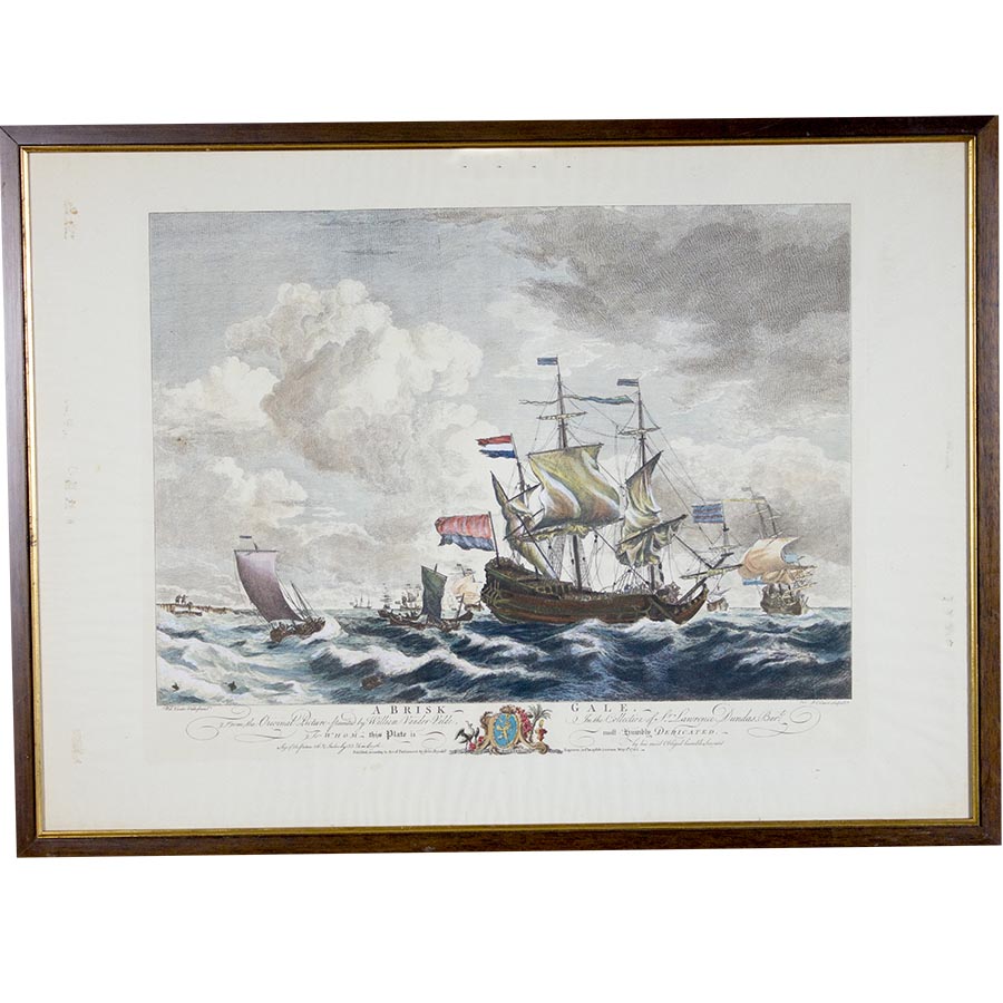 Stampa colorata raffigurante Velieri, da Willem van de Velde (1633-1707)