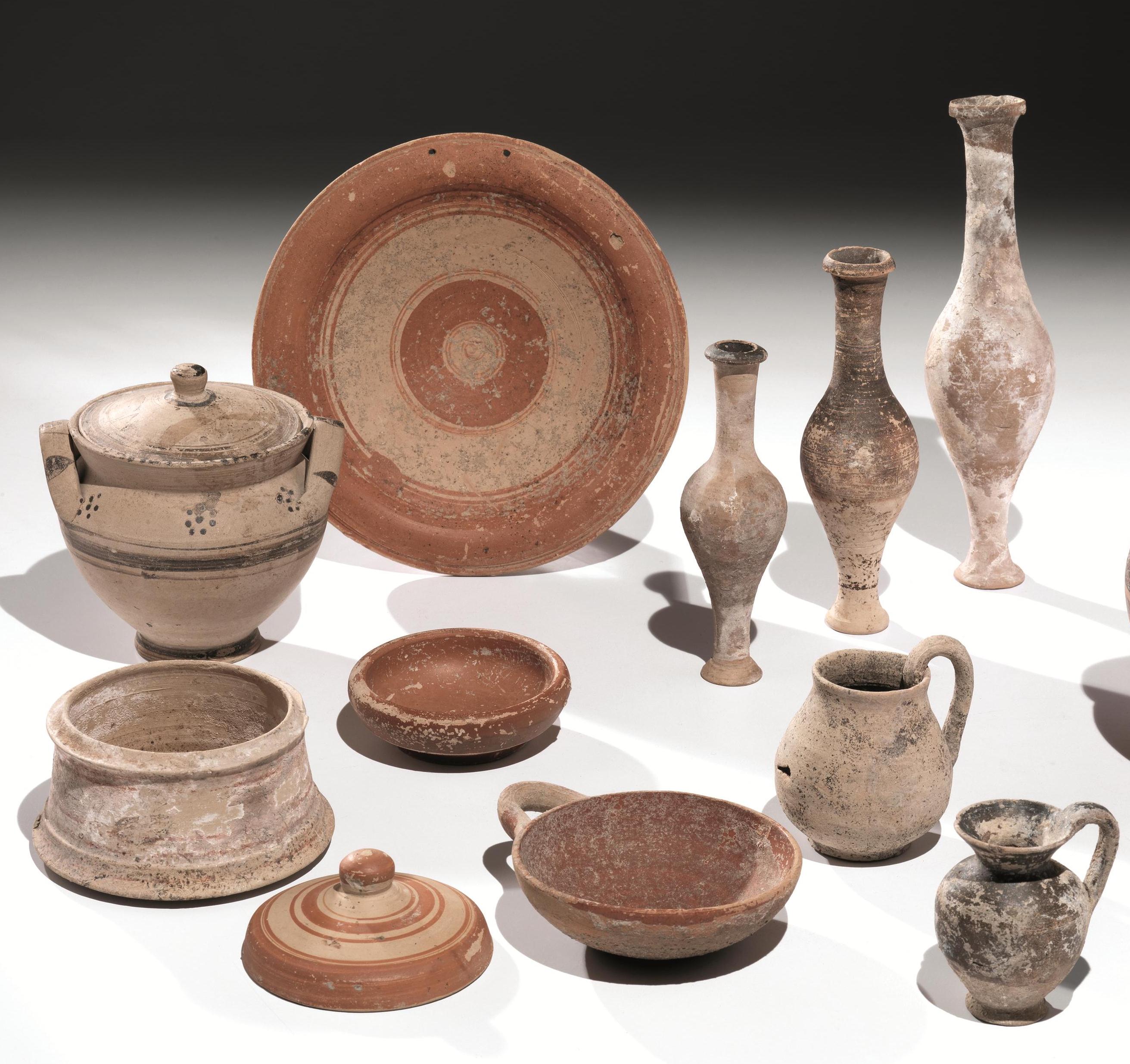 Lotto composto da undici vasi dauniMateria e tecnica: argilla beige chiaro,...