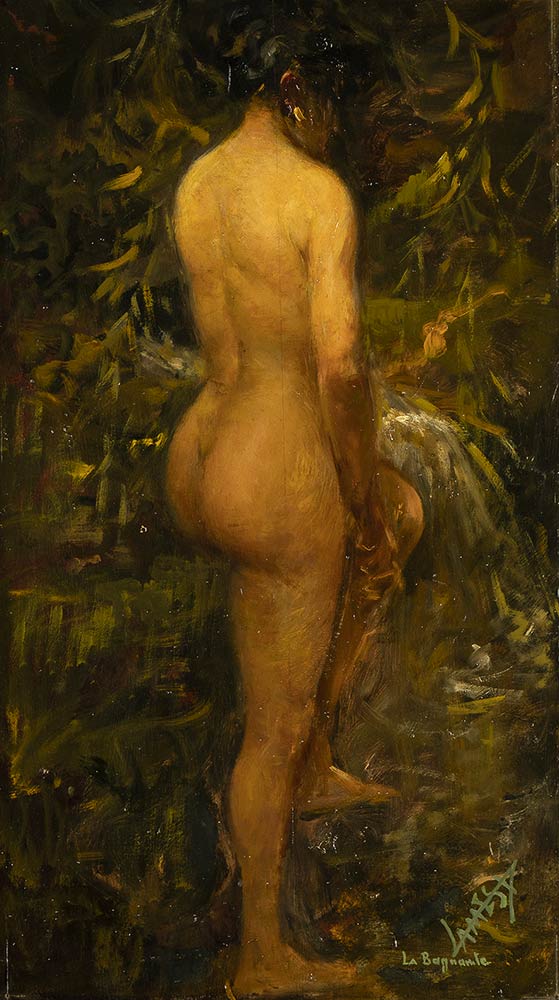 Titolo e firma in basso a destra “La Bagnante, Lamesi”