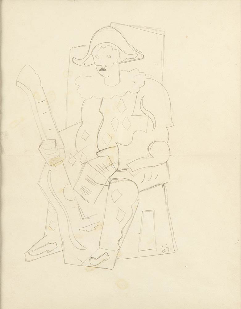 GINO SEVERINI (Cortona, 1883 - Parigi, 1966): Arlecchino seduto