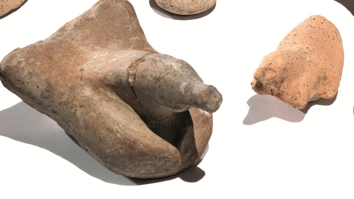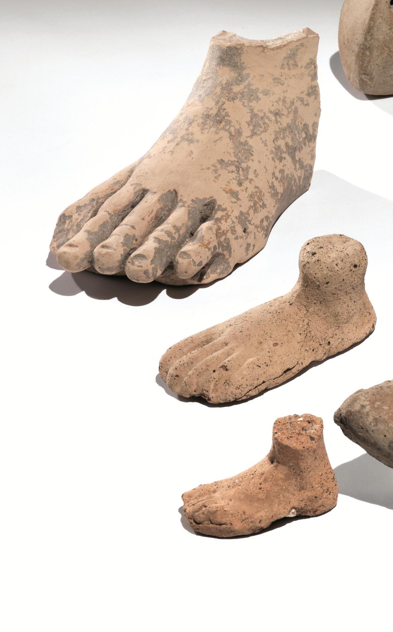 Tre ex voto costituiti da un piede sinistro realisticamente modellato e due falli (5)