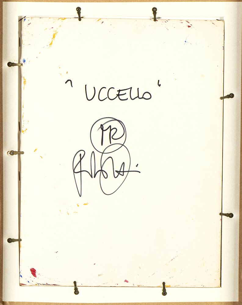 Al retro titolo e firma: "Uccello, Roberto Miniati";
