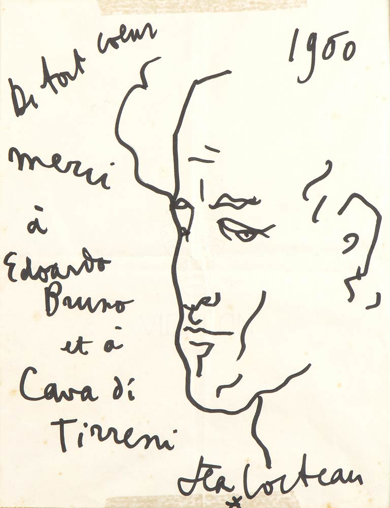 Firmato in basso a destra “Jea Cocteau” e datato in alto a destra “1960”, dedica: “De tout coeur, merci à Edoardo Bruno et à Cava di Tirreni”