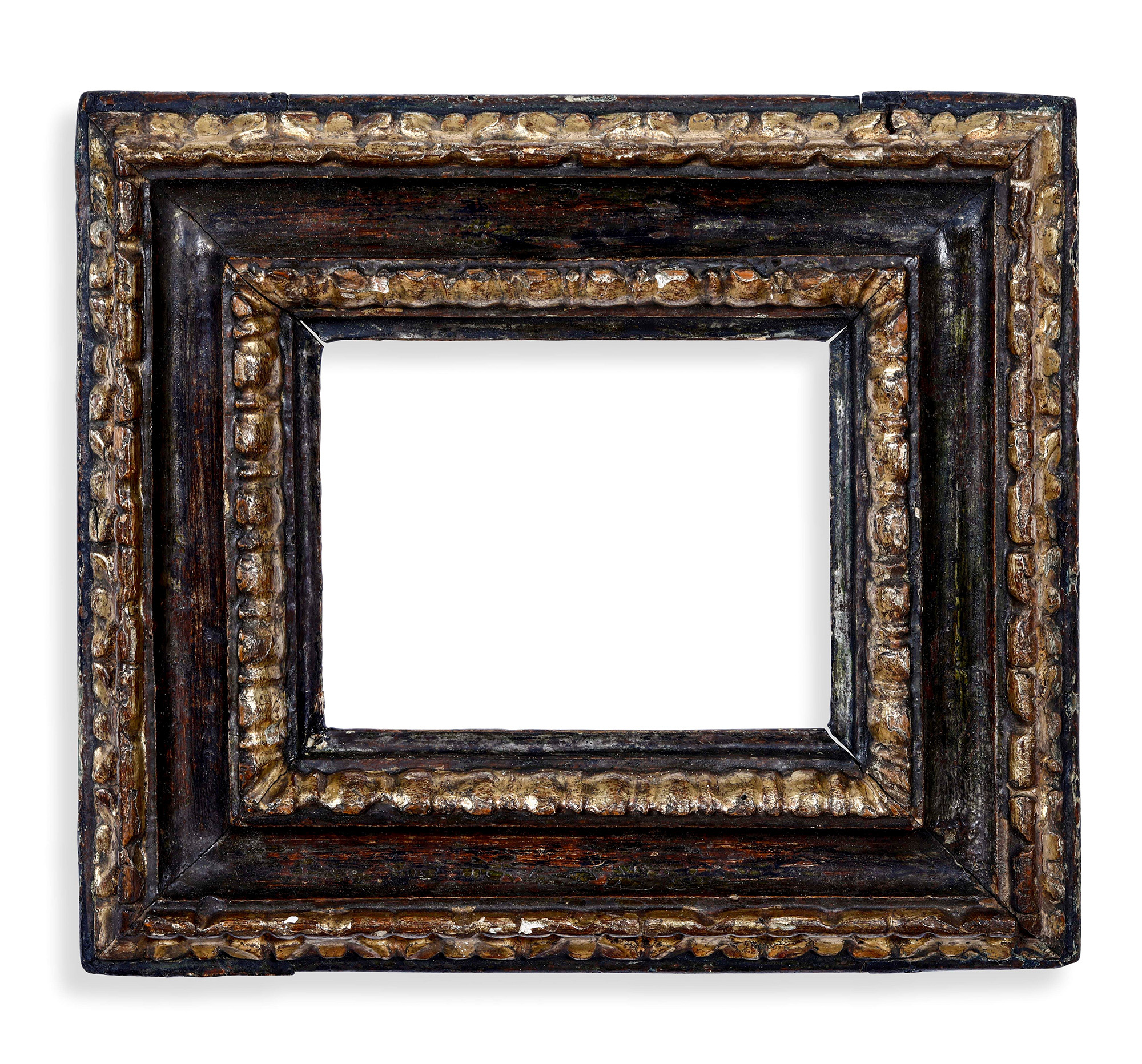 Cornice in legno intagliato, argentato e dorato. Italia centrale XVII secolo, cm 30x27 luce cm 15x12