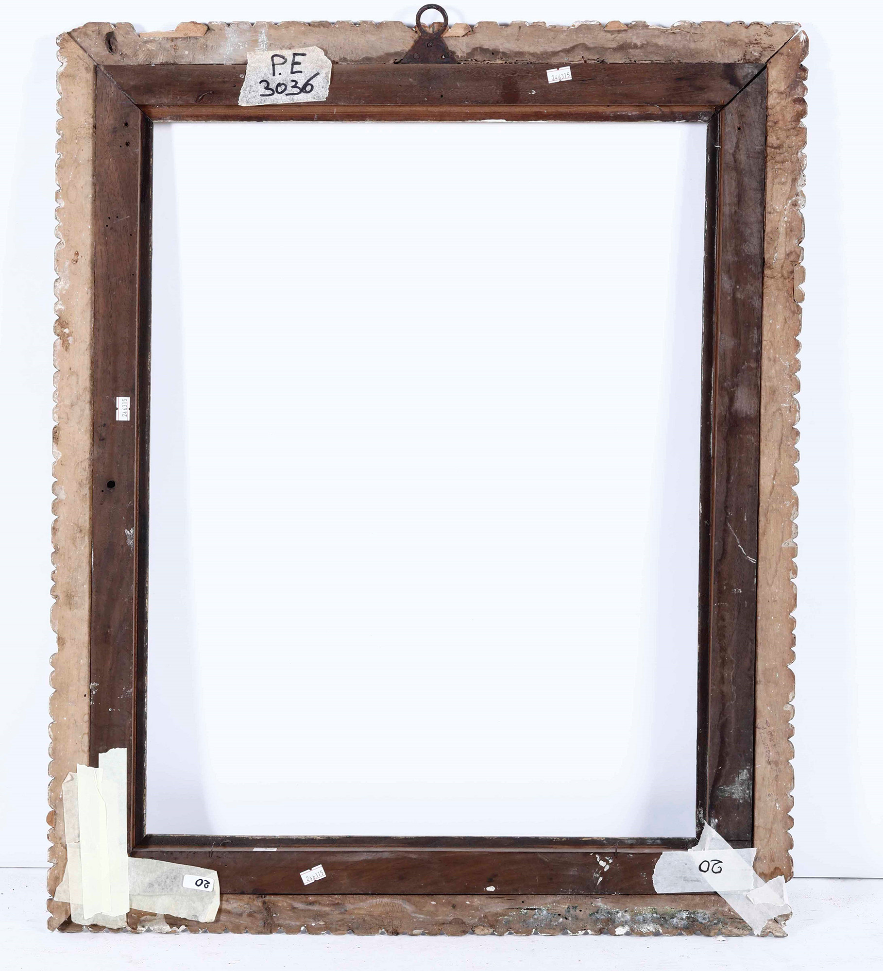 Cornice in legno intagliato, dipinto a finto marmo e dorata. Marche XVIII secolo, cm 84x68,5 luce cm 65x50