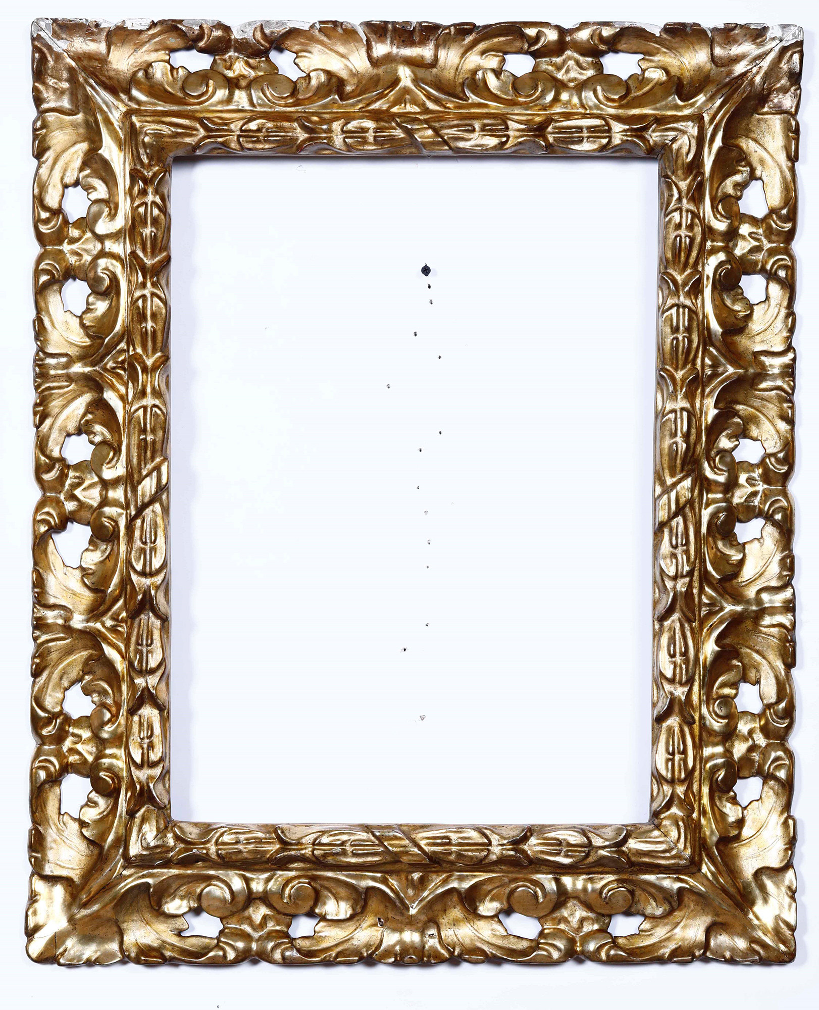 Cornice in legno intagliato dorato a mecca. Toscana XVIII secolo