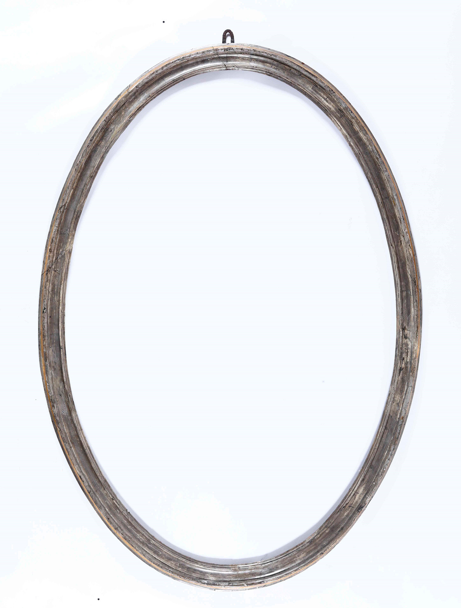 Cornice ovale in legno argentato a mecca. Emilia XVIII secolo