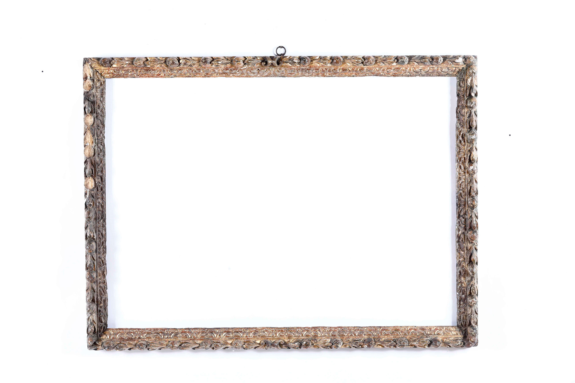 Grande cornice in legno intagliato e dorato, Piemonte XVIII secolo, cm 177x125 luce 100x65