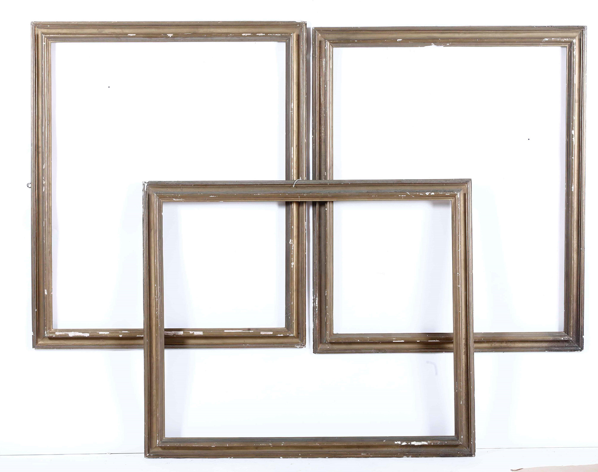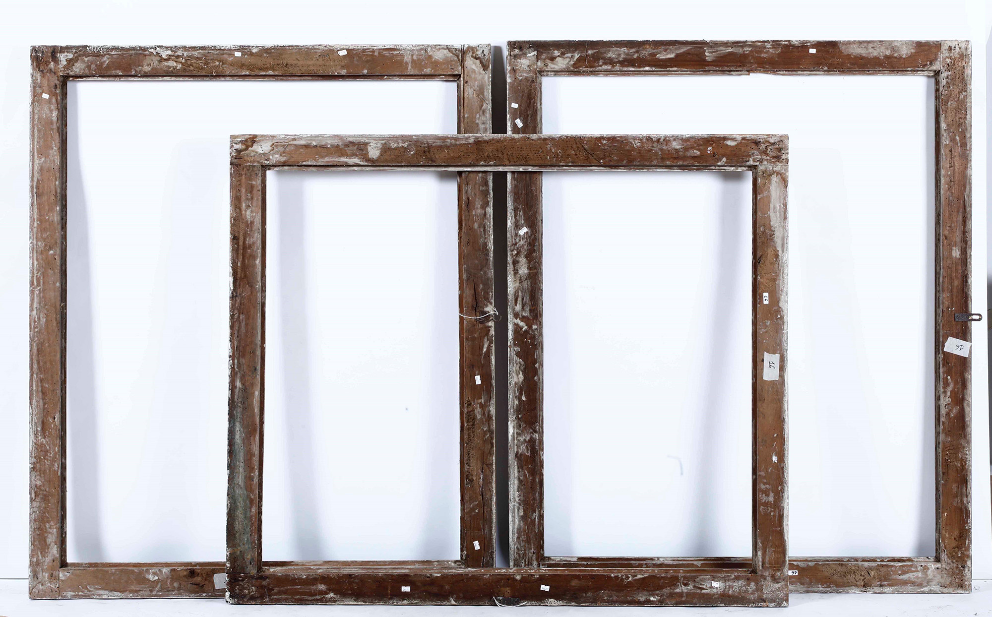Tre cornici Salvator Rosa in legno dorato a mecca, Italia centrale XVIII secolo, luce cm 122x100, esterno cm 140x118