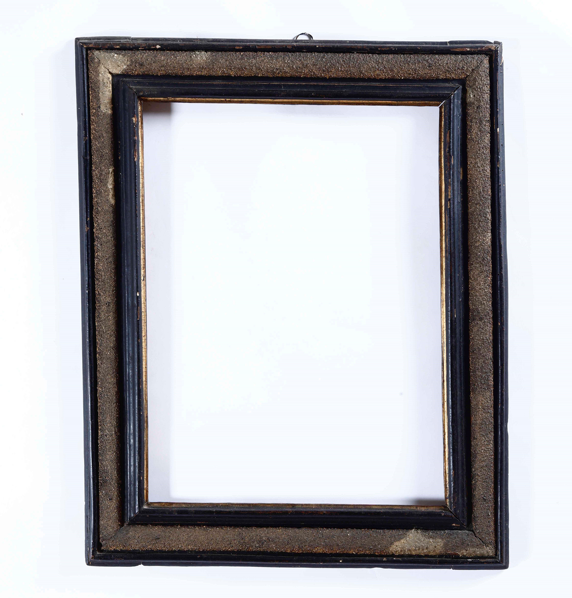 Cornice a cassetta in legno ebanizzato e pastiglia dorata. Toscana XVII secolo, cm 85x78,5 luce cm 64x47