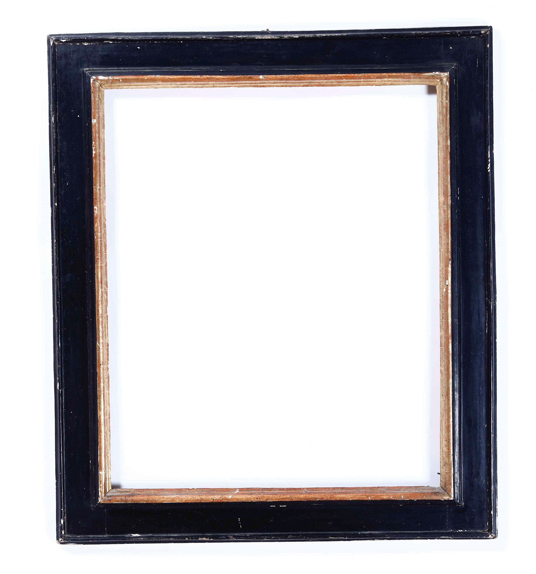 Cornice a cassetta in legno ebanizzato e dorato. Toscana XVII secolo, cm 113,5x98 luce cm 88x72,5