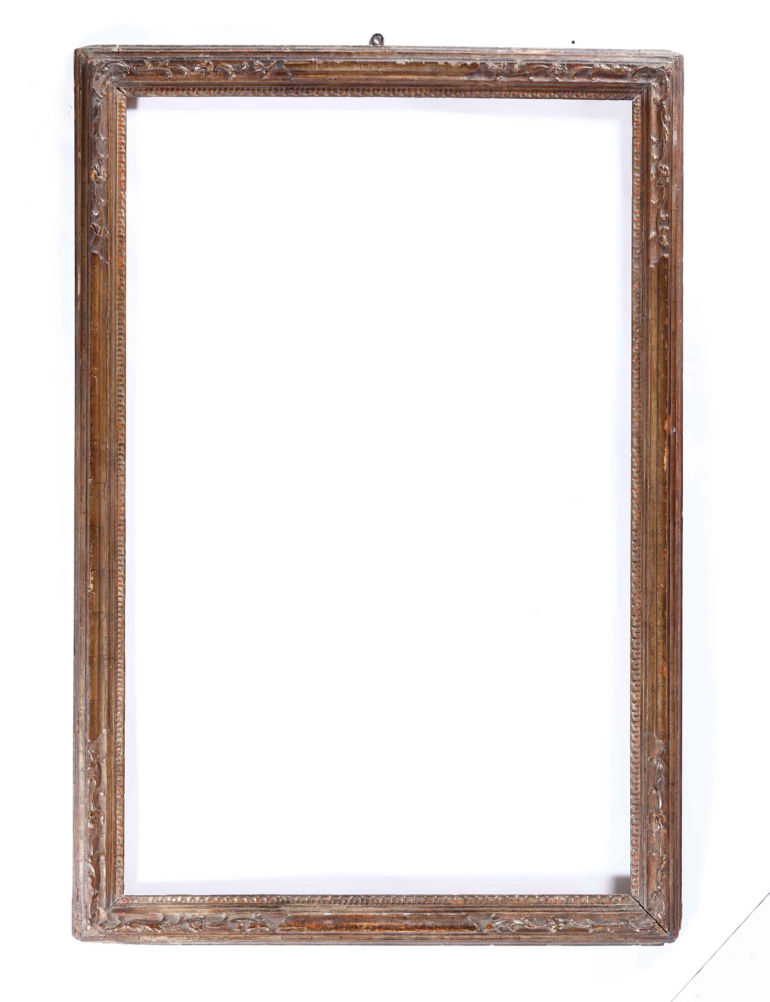 Cornice in legno intagliato e dorato a mecca. Emilia XVIII secolo, cm 167x113 luce cm 147,5x93,5 battuta cm 149,5x96, 2500