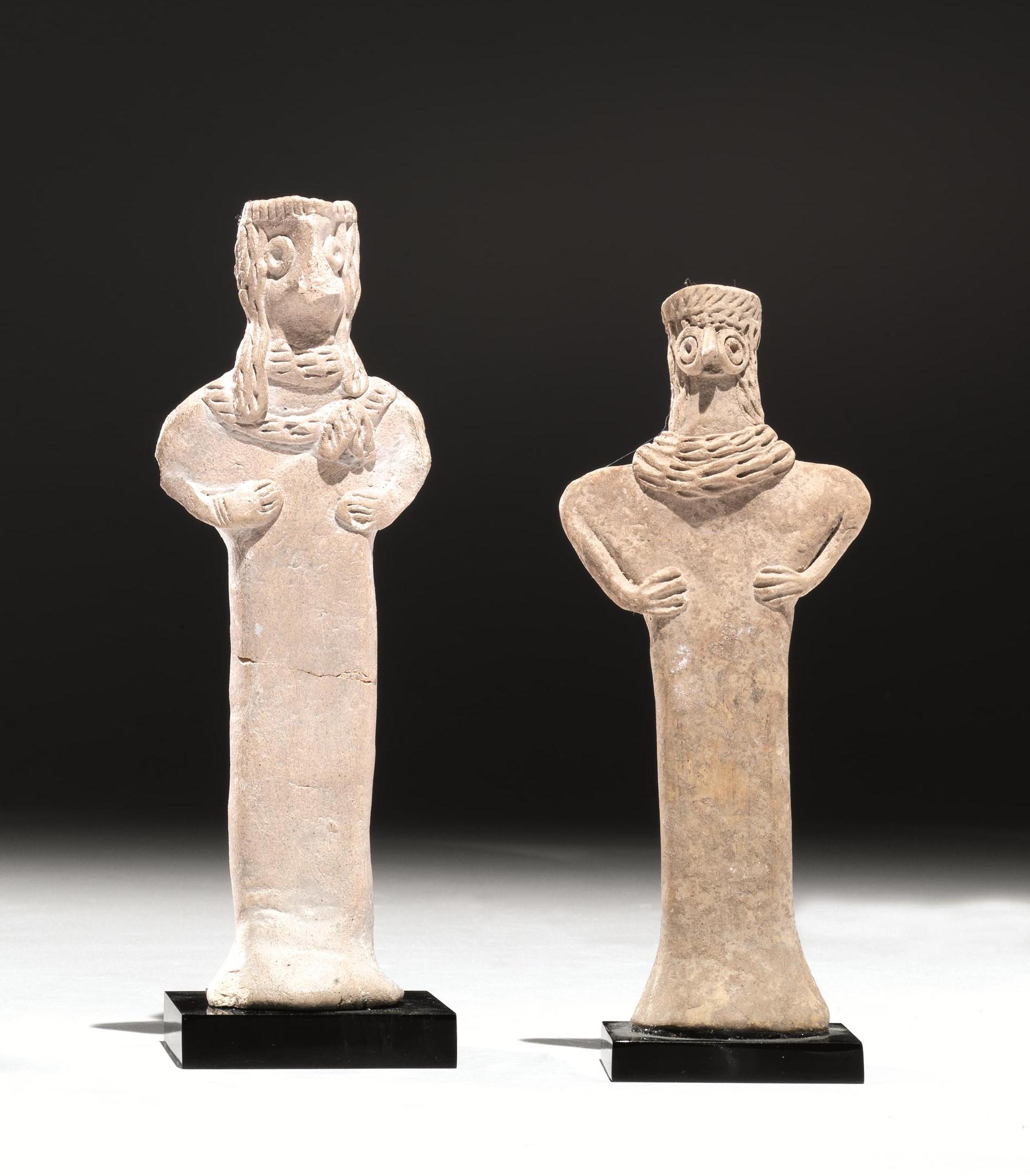 Due idoli a pilastro Materia e tecnica: argilla figulina camoscio, modellate...