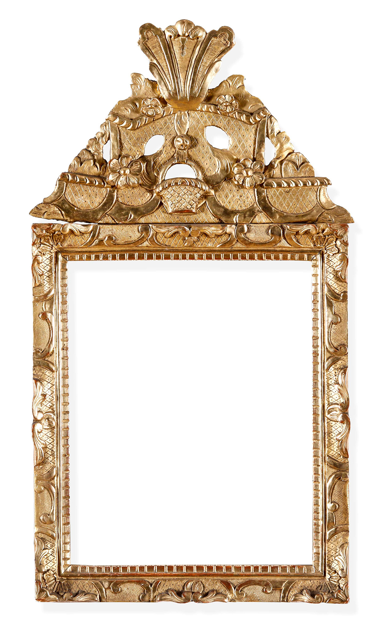 Cornice con specchio in legno intagliato e dorato. Manifattura d'oltralpe XIX secolo