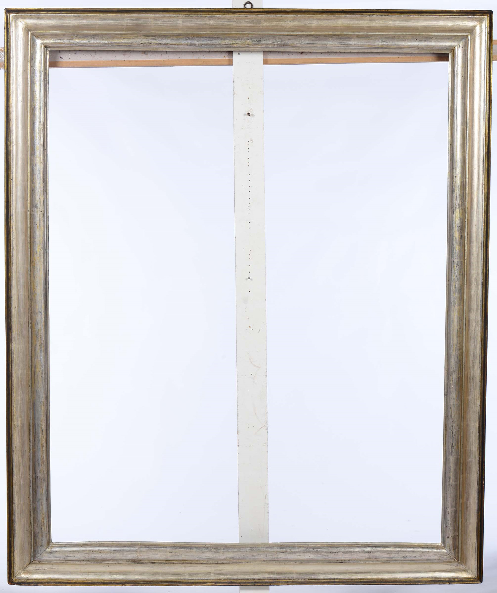 Grande cornice a sagoma romana argentata a mecca, XIX secolo, circa cm 190x160 (170x128)