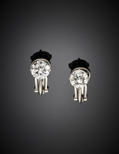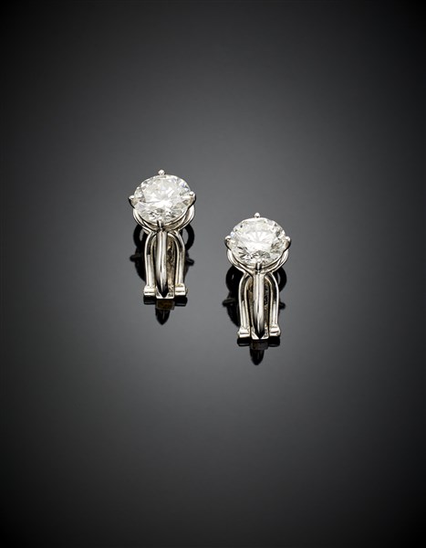 White gold round ct. 1.70 circa and ct. 1.60 circa diamond earclips, g 4.69 circa. Marked 26 AL.