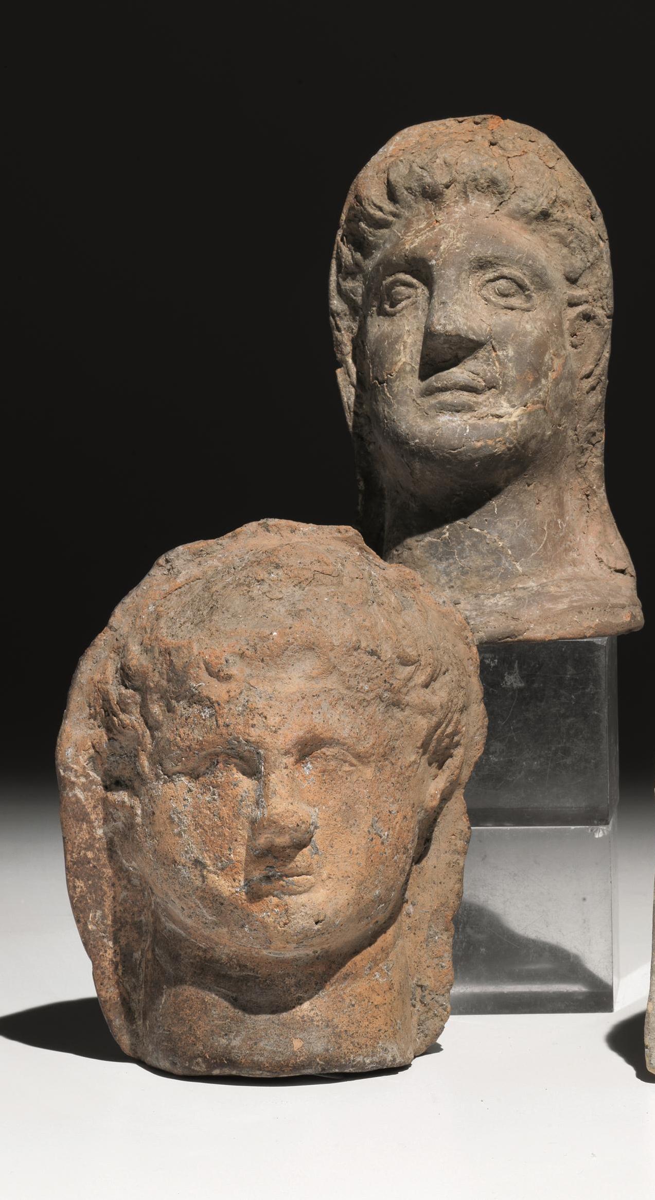 Due teste fittili maschiliMateria e tecnica: impasto rosato ricco di...